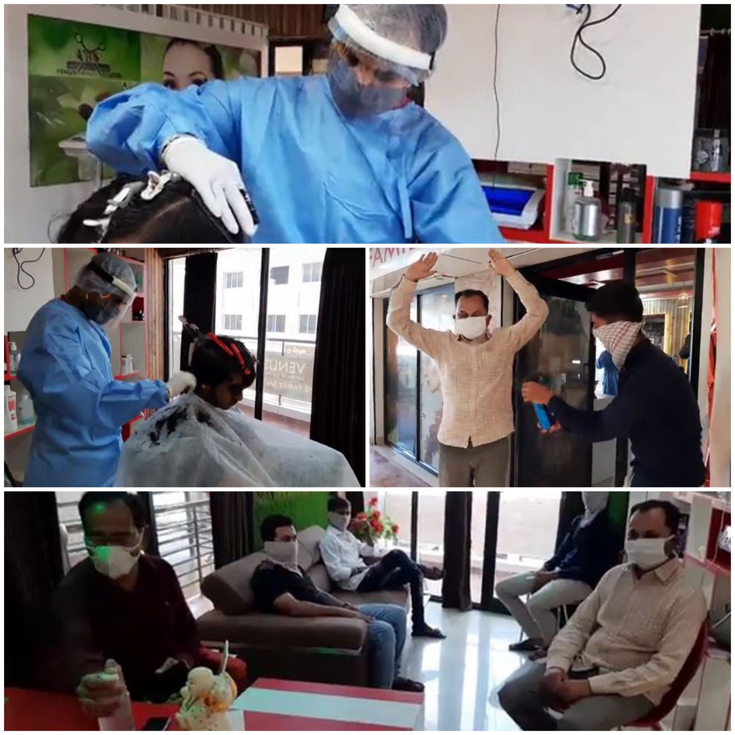 કોરોના ને લઈ હાલ દેશમાં લોકડાઉન ચાલી રહ્યું હોય પણ ધંધા રોજગાર ને ધ્યાનમાં લઈ રાજ્ય સરકારે હેર સલૂનોને પરવાનગી આપી છે જેને ધ્યાને લઇ ઉપલેટા ના વિનસ હેર સલૂન ના માલિકે સરકાર શ્રી ના કાયદાને અનુલક્ષી આત્મનિર્ભરતાની અનોખી પહેલ કરી છે. વિનસ હેર સલૂન ના માલિક જય વાઢેરે સ્વ ખર્ચે પી. પી. ઇ. કીટ, ડીસ્પોઝેબલ એપ્રોન, સ્ટેરેલાઈઝર મશીન ,તથા સેનેટાઇઝર વસાવી કામગીરી શરૂ કરી હતી તેમના કહેવા પ્રમાણે સલૂનમાં આવતા ગ્રાહકોને ગેટ ની બહારથી ફુલ્લ બોડી સેનેટાઇઝ કરી અંદર પ્રવેશ કરાવવામાં આવે છે અંદર માં એન્ટ્રી કર્યા પછી સેનેટાઇઝર થી હેન્ડ વોસ કરાવી સોસ્યલ ડિસ્ટન્સ ના પાલન પ્રમાણે કામગીરી શરૂ કરવામાં આવી છે. અને અન્ય સલૂન ના માલિકોને પણ આ રીતે સલૂનો માં કામગીરી આગળ વધારવા આહવાન કરેલ