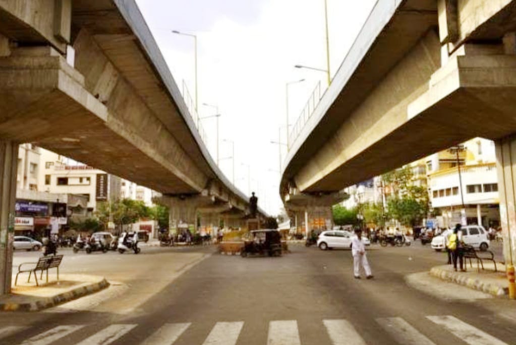 *રાજકોટ શહેર K.K.V સર્કલ ઓવરબ્રીજની ઉપર હાઈલેવલ ઓવરબ્રીજ બનાવવા માટેની કાર્યવાહી, પૂર્ણતાના આરે હોવાનું જાણવા મળેલ છે.*