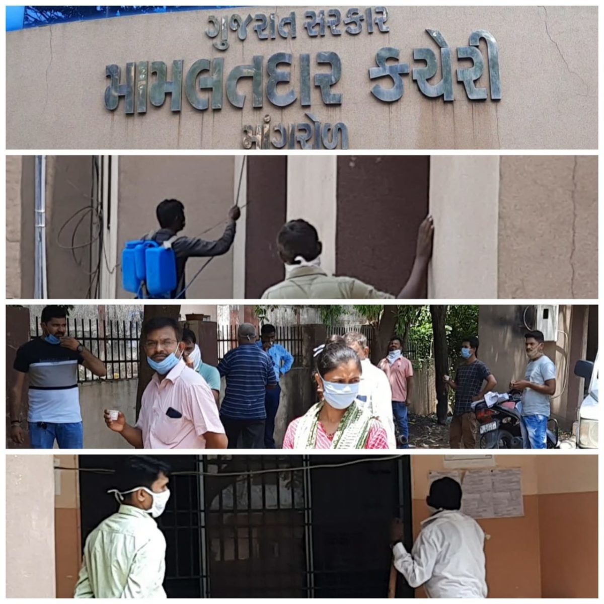 તાલુકા મથક માંગરોળ ખાતે મામલતદાર કચેરી કાર્યરત છે, આ કચેરીમાં વિવિધ વિભાગો કાર્યરત છે.આ કચેરીનાં ઇ-ધરા વિભાગમાં ફરજ બજાવતાં એક પુરૂષ કર્મચારીનો બે દિવસ પહેલાં કોરોનાંનો રીપોર્ટ પોઝીટીવ આવ્યો હતો, ત્યારબાદ આજે પુરવઠા વિભાગમાં ફરજ બજાવતાં એક પુરૂષ કર્મચારીનો રીપોર્ટ પોઝીટીવ આવતાં મામલતદાર કચેરીનાં સ્ટાફમાં ભય ઉભો થવા પામ્યો છે, જેને પગલે કચેરીની તમામ કામગીરી હાલ પૂરતી સ્થગિત કરી દેવામાં આવી છે, જ્યારે સબરજીસ્ટર્ડ કચેરીનાં અધિકારીને મામલતદારે કચેરી બંધ રાખવા સૂચના આપી પરંતુ સબરજીસ્ટરડે લેખિતમાં માંગ કરતાં  લેખિતમાં લખાણ ન મળતાં આ કચેરી ચાલુ રખાતા મામલતદાર કચેરીનાં સ્ટાફ અને પ્રજાજનોમાં ભય ઉભો થવા પામ્યો છે, જો કે અરજદારોને મામલતદાર કચેરીમાં ન આવવા જણાવાયું છે, જો કે આજે આખી કચેરી સુમસામ નજરે પડતી હતી, જ્યારે માંગરોળ ખાતે જૂની કોર્ટ વિસ્તારમાં રહેતાં એક પુરૂષ નો કોરોનાં નો રીપોર્ટ પોઝીટીવ આવતાં માંગરોળ ગામની પ્રજામાં પણ ફફડાટ વ્યાપી જવા પામ્યો છે.આજે વેરાકુઈ પ્રાથમિક આરોગ્ય કેન્દ્ર તરફથી મામલતદાર કચેરીનાં સ્ટાફને ઉકાળો અને ટેબ્લેટનું વિતરણ કરવામાં આવ્યું છે.તથા આખી કચેરીને સેનેતાઇઝર કરવાની કામગીરી શરૂ કરવામાં આવી છે.