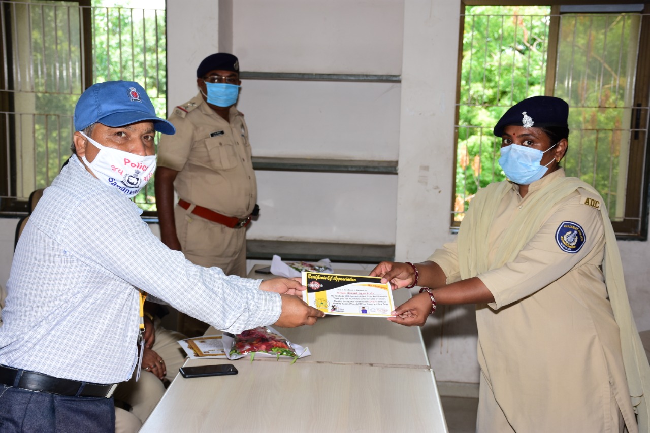 *_🙏🏻🌹આજરોજ તારીખ:-૦૩/૦૭/૨૦૨૦ ના રોજ અત્રેના ગોમતી પુર (“એચ”) ટ્રાફિક પોલીસ સ્ટેશન ખાતે પોલીસ (ઇન્સ્પેકટર) શ્રી એન.એચ.જાડેજા તથા મ.પો.કમિશ્રી ટ્રાફિક (“ક”) બી.એમ.ચૌધરી સાહેબ ના સમન્વય થી કોરોના વોરિયર્સ ને સન્માન આપી કાર્યક્રમ સોશિયલ ડિસ્ટન્ટીંગ રાખી અમદાવાદ ટ્રાફિક પોલીસ તથા એપીક ફાઉન્ડેશન ના મીલનભાઈ વાઘેલા. તથા શ્રીનિધિ સેવા ટ્રસ્ટ ટે સન્માન પત્ર આપ્યા પોલીસ સમન્વય ના (જય માડી) પંકજભાઈ બી પંચાલ. સારથી રથ ફાઉન્ડેશન ટ્રસ્ટ ના અમિતભાઈ પટેલ અને મનિષભાઇ જૈન દ્વારા કાર્યક્રમ નું આયોજન કરવામાં આવેલ કાર્ય ક્રમ મા હાજર રહેલ પોલીસ અધીકારીયો નો ઉત્સાહ જોવા મળ્યો એ જોઈ તમામ જોડાયેલા ટ્સ્ટ ના સભ્યો નુ સનમાન કરવા મા આવેલ આયોજન નો ખુબ આનંદ અનુભવ્યો._*