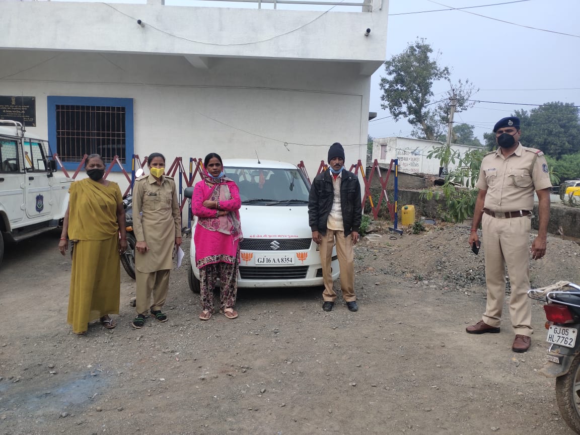 સફેદ કલરની સ્વીફ્ટ ફોરવ્હીલ કાર આવતા જેનેરોકાવી ચેક કરતા અંદર એક મહીલા અનેએક પુરૂષ બેઠેલ હોય અનેપાછળની