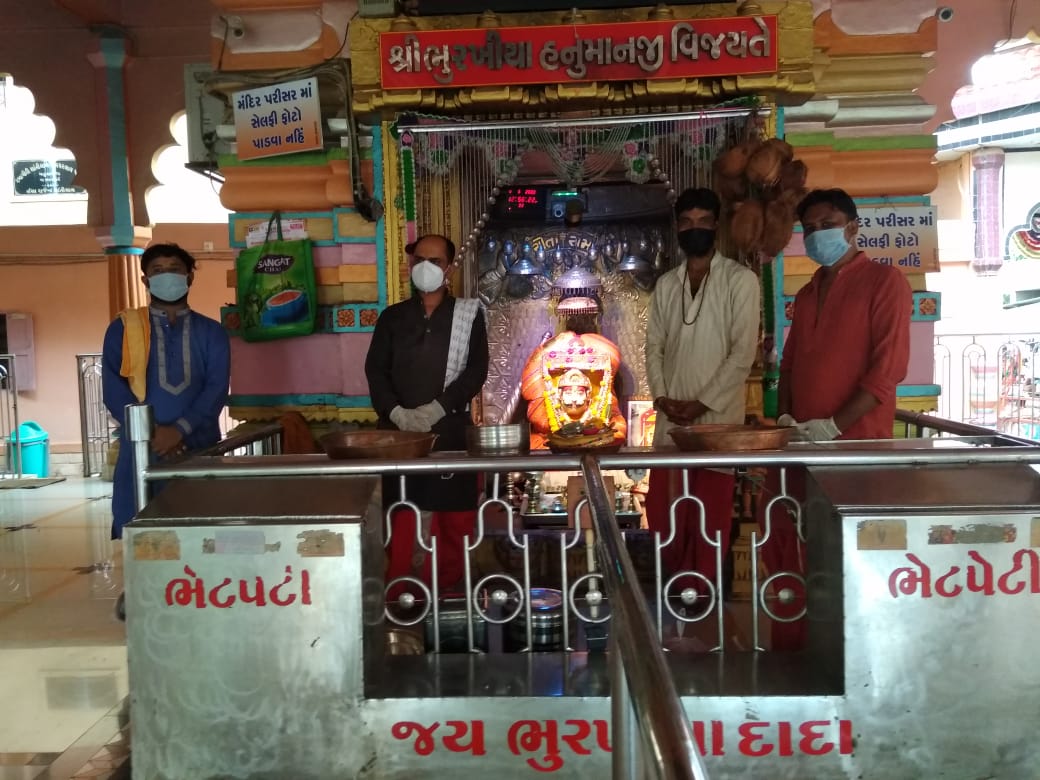 સરકારની માર્ગદર્શિકા મુજબ આજ તા.૮-૬ થી ધર્મસ્થાનો દર્શન માટે ખોલવામાં આવતાં શ્રદ્ધાળુઓમાં હર્ષની લાગણી જન્મી છે.અમરેલી જીલ્લાના દામનગર થી ૬ કી.મી. નજીક આવેલ સ્વયંપ્રગટ ભૂરખીયા હનુમાનજી મંદિરનાં ૮૦ દિવસ પ્રવેશદ્વાર અને દર્શન લોકડાઊને કારણે બંધ રહેલ,જે આજરોજ વહીવટી તંત્રની આદેશ બાદ સમય મર્યાદામાં દર્શન માટે ખોલવામાં આવતાં પુજારી પરિવાર,ટ્રસ્ટી ગણ અને સ્થાનિક વેપારીઓ તેમજ અપાર શ્રદ્ધા ધરાવતાં ભક્તોમાં અનહદ ખુશી છવાઈ ગઈ છે.અત્રે ઉલ્લેખનીય છે કે આ હનુમાનજી દાદાની મૂર્તિ સંવત ૧૬૪૨ માં ચૈત્ર સુદ પુનમ ની રાત્રે ૧૨ કલાકે સ્વયં પ્રગટ થયેલ.તસ્વીર-અહેવાલ અતુલ શુકલ દામનગર.