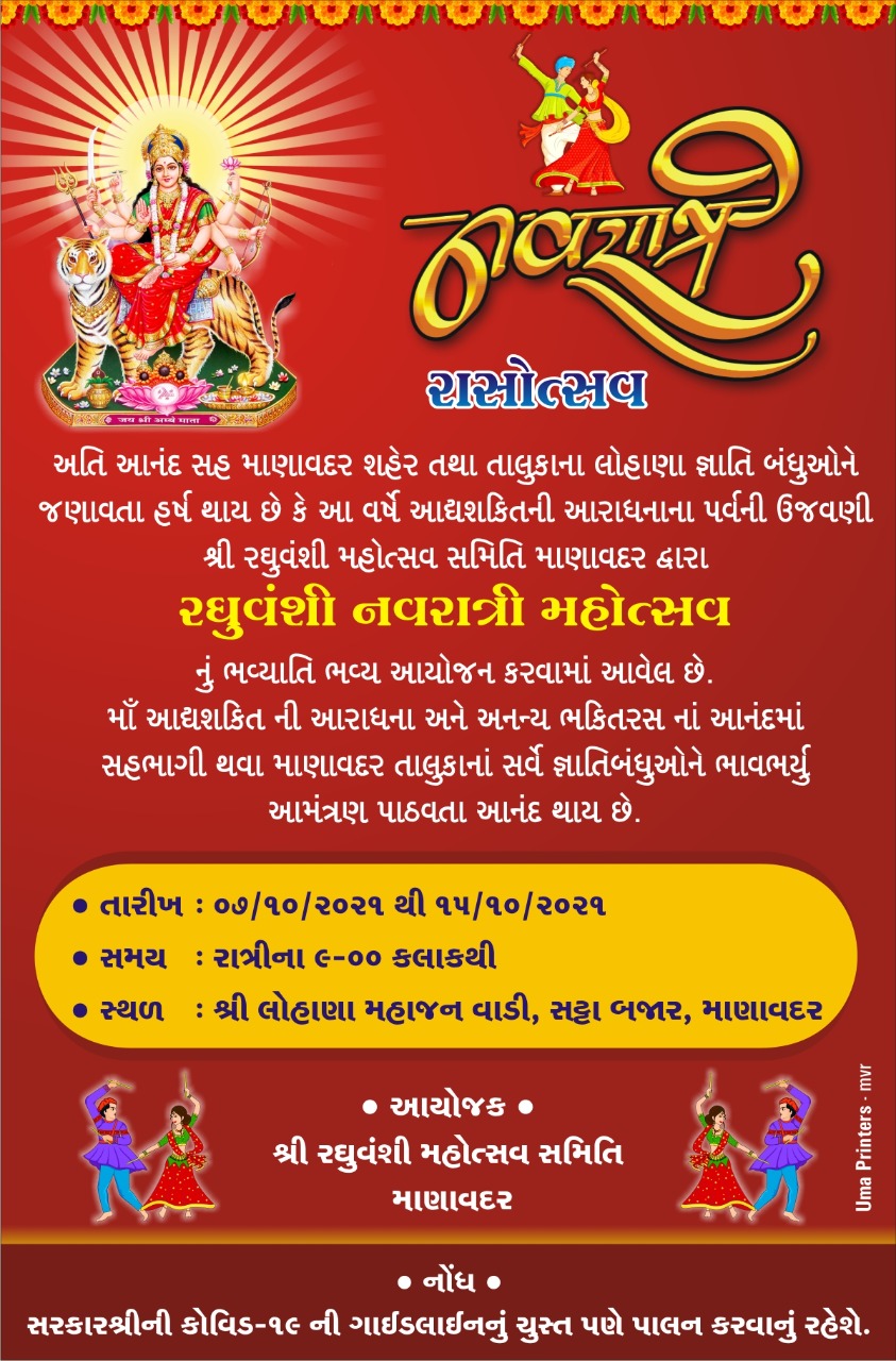 શ્રી રઘુવંશી મહોત્સવ સમિતી”* માણાવદર દ્વારા *રઘુવંશી નવરાત્રી મહોત્સવ* નું ભવ્યાતિભવ્ય આયોજન કરવામાં આવેલ છે