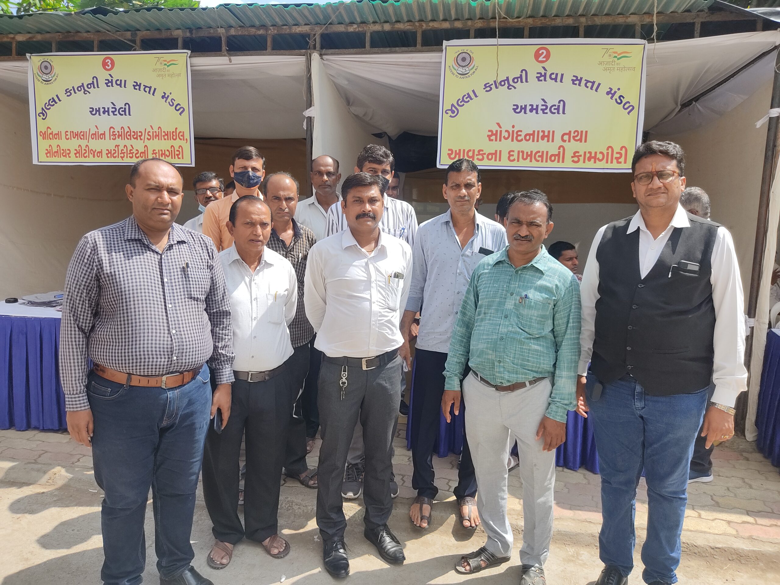 નેશનલ લીગલ સર્વિસીઝ ઓથોરીટી, ન્યુ દિલ્હી તથા નામ, ગુજરાત રાજ્ય કાનૂની સેવા સત્તા મંડળ, અમદાવાદની સૂચના મુજબ જિલ્લા કાનૂની સેવા સત્તા મંડળ, અમરેલી દ્વારા “આઝાદી કા અમૃત મહોત્સવ” ની ઉજવણી નિમિતે પાન ઈન્ડિયા અવેરનેસ એન્ડ આઉટરીચ પ્રોગ્રામ અન્વયે તારીખ ક ઓકટોબર, ૨૦૨૧ ના રોજ જિલ્લા કલેકટર કચેરી, અમરેલી તથા જિલ્લા આરોગ્ય વિભાગ, અમરેલીના સહયોગથી કલેકટર ઓફિસ કમ્પાઉન્ડ, અમરેલી ખાતે મેગા લીગલ સર્વિસીઝ કેમ્પનું આયોજન કરવામાં આવેલ. જેમાં મામલતદારશ્રી. અમરેલી શહેર મામ્ય, જિલ્લા કાનૂની સેવા સત્તા મંડળ, અમરેલી નથી જિલ્લા અદાલતના કર્મચારીશ્રીઓ, નાયબ મામલતદારશ્રી, પુરવઠા, એ.ટી.વી.ટી., વિધવા સહાય વૃધ્ધ સહાય, સીટી તલાટીશ્રીઓ/કલાર્કશ્રીઓ, જન સેવા કેન્દ્રના ઓપરેટરશ્રીઓ, શાંતાબા મેડીકલ કોલેજ તથા આરોગ્ય વિભાગના કર્મચારીશ્રીઓ તથા અમરેલી બાર એસોસીએશનના વકીલશ્રીઓ તથા પેરા લીગલ વોલેન્ટીયર્સ અને એસ.ડી. કોટક લો કોલેજના વિધાર્થીઓ હાજર રહેલ.