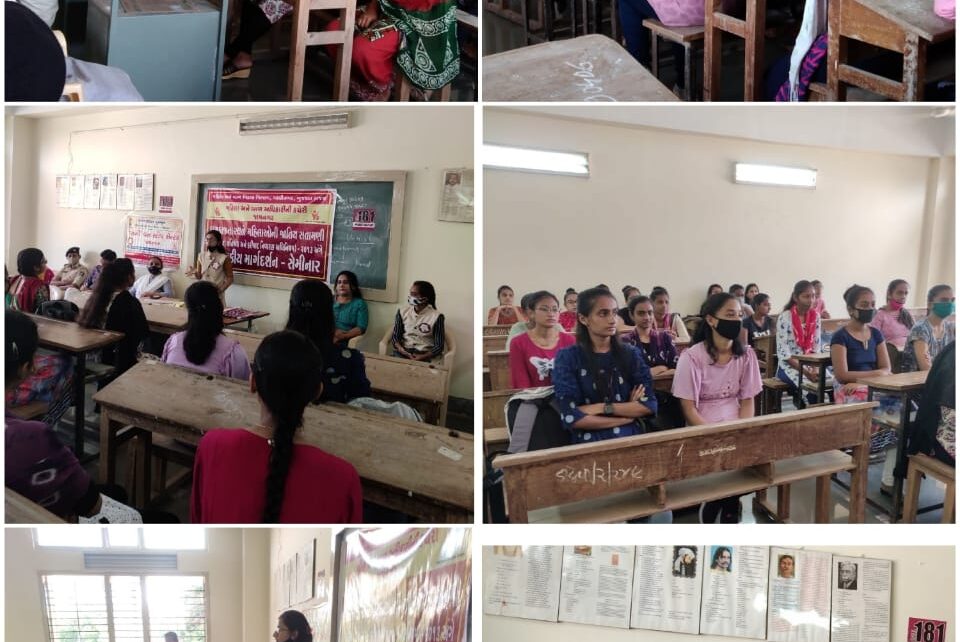 જામનગર જીલ્લા મહિલા અને બાળ અધિકારીની કચેરી તથા ડી.કે.વી આર્ટ્સ એન્ડ સાયન્સ કોલેજના સંયુક્ત ઉપક્રમે “આઝાદી કા અમૃત મહોત્સવ“ની ઉજવણી અંતર્ગત વિદ્યાર્થીનીઓને “કામકાજનાં સ્થળે મહિલાઓની જાતિય સતામણી” અંગે કાનૂની માર્ગદર્શન સેમિનારનું આયોજન કરવામાં આવ્યું હતું. આ કાર્યક્રમમાં જીલ્લા દહેજ પ્રતિબંધક સહ રક્ષણશ્રી હંસાબહેન ટાઢાણી દ્રારા ઉપસ્થિત વિદ્યાર્થીનીઓને દહેજ અને તેને સંલગ્ન કાનૂની બાબતો વિશે વિસ્તૃત માહિતી આપેલ તથા મહિલા અને બાળ વિકાસ વિભાગની વિવિધ યોજનાઓની જાણકારી આપી હતી.ફિલ્ડ ઓફિસર કે.ડી.ચેતરીયા દ્વારા કામકાજના સ્થળે થતી જાતીય સતામણી વિશે માહિતી સાથે આવા કોઇ સંજોગો ઊભા થાય તો તેનો કેવી રીતે સામનો કરવો તેના વિશે વિસ્તૃત સમજ આપેલ હતી. ૧૮૧ મહિલા હેલ્પ લાઈનની ટીમ દ્વારા મુશ્કેલીના સમયમાં હેલ્પલાઇન કેવી રીતે મદદરૂપ થાય છે અને કેવી રીતે સંપર્ક કરવો તેના વિશે જણાવવામાં આવેલ હતું. તદઉપરાંત કટોકટીના સમયમાં ‘સખી’વન સ્ટોપ સેન્ટર કઇ રીતે મદદરુપ થાય છે અને સેન્ટર પર મહિલાઓને આશ્રયની સાથે કાનૂની, મેડિકલ અને પોલીસની સહાય પણ મળી રહે છે તેવી તમામ બાબતોથી વિદ્યાર્થીનીઓને માહિતગાર કરવામાં આવેલ. આ કાર્યક્રમમાં કોલેજના પ્રોફેસર સોનલ, કોલેજના અધ્યાપકો, મહિલા કલ્યાણ અધિકારી, વન સ્ટોપ સેન્ટરના કર્મચારીઓ અને કોલેજની વિદ્યાર્થીનીઓ ઉપસ્થિત રહ્યા હતા.