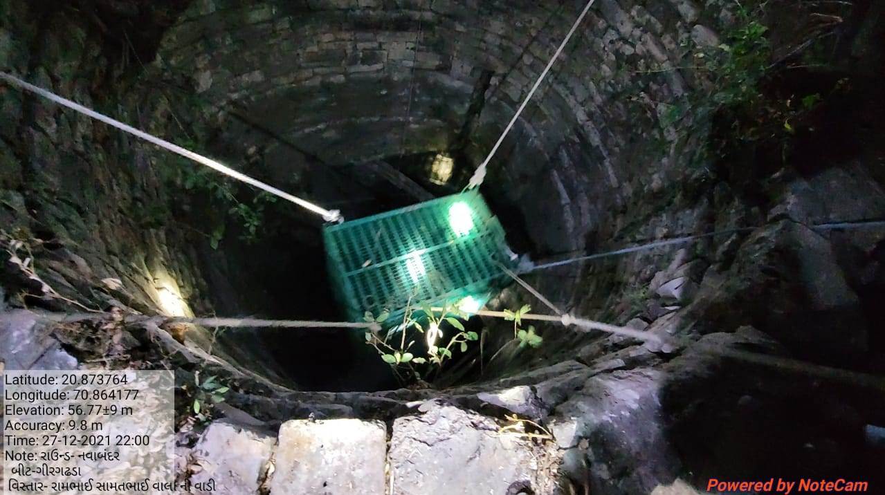 ગીરગઢડાના ઝાંઝરીયા ગામની સીમ વાડી વિસ્તારમાં બપોરના સમયે દિપડો આવી ચડતા અને શિકારની પાછળ દોટ મુકતા શિકાર સાથે દીપડો ૮૦ ફુટ ઉંડા કુવામાં ખાબક્તા વનવિભાગ દ્રારા દીપડો તેમજ ગીધનું સલામત રીતે રેસ્ક્યુ કરી બહાર કાઢી જશાધાર એનિમલકેર સેન્ટર ખાતે ખસેડાયેલ છે. જાંજરીયા ગામની સીમ વાડી માલીક રામભાઇ સામતભાઇ વાળા આવેલ તેમાં સોમવારના રોજ દિવસ દરમ્યાન બપોરના સમયે આસપાસ દીપડો અચાનક શિકારની શોધમાં આવી ચડ્યો હતો. અને શિકારની શોધમાં આ દીપડો ગીધ (વણીયાર) ની પાછળ દોટ મુકી હતી. અને અચાનક વાડીમાં આવેલ ૮૦ ફુંટ ઉંડા કુવામાં ગીધ સાથે દીપડો કુવામાં ખાબકી ગયેલ અને રાત્રીના દશ વાગ્યાની આસપાસ કુવાના પાણીમાં તડફડતા મારતો અવાજ આવતા વાડી માલીકે કુવામાં જોતા દીપડો અને ગીધ નજરે પડતા અચંબામાં પડી ગયેલા અને આ અંગેની વનવિભાગને જાણ કરતા વનવિભાગની રેસ્ક્યુ ટીમ સહીત પાંજરા દોરડા સાથે તાત્કાલીક ઘટના સ્થળે દોડી ગયેલ હતી. અને બે કલાકની જહેમત બાદ દીપડાને ૮૦ ફુટ ઉંડા કુવામાંથી સહી સલામત રીતે દીપડો તેમજ ગીધને બહાર કાઢી જશાધાર એનિમલકેર સેન્ટર ખાતે ખસેડવામાં આવેલ. દીપડાનું મહાસીબતે રેસક્યુ કરતા વનવિભાગે અને વાડી માલીકે રાહતનો શ્વાસ લીધો હતો.