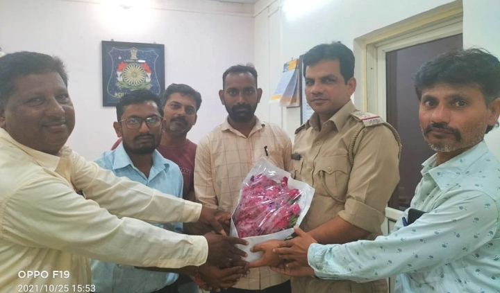 ગુજરાત ક્ષત્રિય ઠાકોર વિકાસ સંઘ દ્વારા કઠલાલ પોલીસ સ્ટેશન માં નવા નિમાયેલ પીએસઆઇ સાહેબ શ્રી વિ.એ.ચારણ ની શુભેચ્છા મુલાકાત કરવામાં આવી હતી જેમાં તાલુકા પ્રમુખ મહેશભાઈ ચૌહાણ મહામંત્રી વિજય સિંહ સોઢા પરમાર, તાલુકા ઉપપ્રમુખ ઈન્દ્રવદન પરમાર ,મહામંત્રી જયદીપસિંહ ચાવડા સલાહકાર રયજીભાઈ ચૌહાણ જિલ્લા મીડિયા સેલ રાજેશભાઈ દવે ,પોરડા ગામ સમિતિના પ્રમુખ ગોપાલભાઈ પરમાર નાહોદ્દેદારો દ્વારા પુષ્પગુચ્છ આપી સ્વાગત કરવામાં આવ્યું હતું.