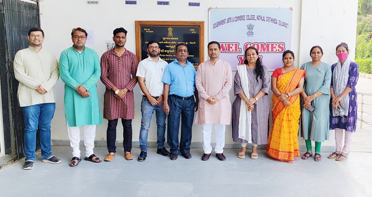 ગુજરાત સરકારશ્રીના શિક્ષણ વિભાગના પરિપત્ર અનુસાર ખાદી ફોર નેશન, ખાદી ફોર ફેશનના મંત્રને ચરિતાર્થ કરવા સરકારી સરકારી વિનયન અને વાણિજ્ય કોલેજ કઠલાલમાં આચાર્યશ્રી અને તમામ અધ્યાપકો તથા કર્મચારીઓએ ખાદીના વસ્ત્રો પહેરીને ખાદી અભિયાનને સફળ બનાવ્યું હતું. વિદ્યાર્થીઓને પણ ખાદીનું મહત્વ સમજાવી ખાદી પહેરવાની પ્રેરણા આપી હતી. તસવીર : મકસુદ કારીગર,ખેડા-કઠલાલ