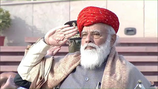 એક સમય હતો જ્યારે લોકોના માથે વિવિધ પ્રકારની પાઘડીઓ જોવા મળતી હતી. પ્રધાનમંત્રી નરેન્દ્ર મોદી પણ જે પ્રદેશમાં જાય ત્યાંની પરંપરાગત પાઘડી પહેરવાનું ક્યારે નથી ભૂલતા. તો સ્વતંત્રતા દિવસ અને પ્રજાસત્તાક દિનની ઉજવણીમાં પણ તેઓ ખાસ પ્રકારની પાઘડીમાં હંમેશા જોવામ ળતા હોય છે. ત્યારે પ્રધાનમંત્રી નરેન્દ્ર મોદીએ ગણતંત્ર દિવસ પર સાફો બાંધવાની પ્રથા યથાવત રાખી હતી. તેઓ 72 મા ગણતંત્ર દિવસ પર ખાસ પાઘડી પહેરેલા જોવા મળ્યા હતા. કેસરી કલરની આ પાઘડી તેમના પર શોભતી હતી. પ્રધાનમંત્રી મોદીએ ઈન્ડિયા ગેટ પર રાષ્ટ્રીય યુદ્ધ સ્મારક પર પુષ્પ અર્પણ કરીને સૈનિકોને શ્રદ્ધાંજલિ આપી હતી.