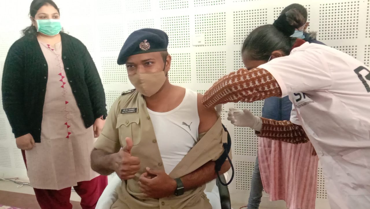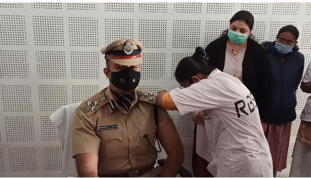 ભારત સરકાર દ્વારા આયોજીત કોરોના રસીકરણ ના કાર્યક્રમ માં ફ્રન્ટ લાઇન કોરોના વોરિયર્સને રસિકરણના ભાગરૂપે જૂનાગઢ રેંજના ડીઆઈજી શ્રી મનીંદર પ્રતાપસિંહ પવાર, જૂનાગઢ જીલા પોલીસ વડા શ્રી રવિ તેજા વાસમ શેટ્ટી, જૂનાગઢ ડિવિઝનના ડીવાયએસપી પ્રદીપસિંહ જાડેજા, ડીવાયએસપી જે.બી.ગઢવી, ડીવાયએસપી આર.વી.ડામોર, ડીવાયએસપી એચ.એસ.રતનું, સહિતના પોલીસ અધિકારીઓ તથા પોલીસ સ્ટાફ પોલીસ હેડ કવાર્ટર, જૂનાગઢ શહેર ખાતે ખાસ વ્યવસ્થા કરી, રસીકરણ માં ભાગ લઈ કોરોના ની રસી લીધેલ હતી.. ઉપરાંત જૂનાગઢ જિલ્લાના કેશોદ, માંગરોળ, સહિતના તમામ તાલુકા મથક ખાતે પણ પ્રાથમિક આરોગ્ય કેન્દ્રમાં તમામ પોલીસ અધિકારીઓ તથા સ્ટાફને રસિકરણની વ્યવસ્થા ગોઠવી, રસીકરણ કરવામાં આવેલ હતું…