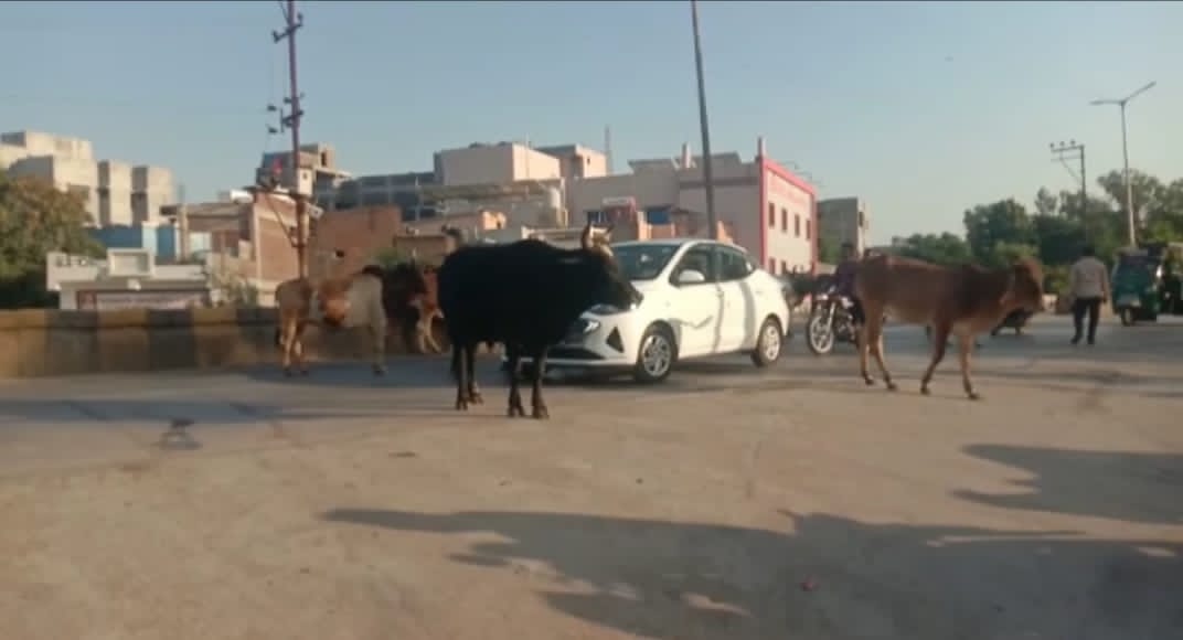 જેતપુરના ધોરાજી રોડ પર હજુ થોડા દિવસ પહેલા જ ગૌમાતા ને ટ્રેનકર ચાલકે ઇજાગ્રસ્ત કરી હતી તેનો રોષ લોકોમાં સમાયો નહોતો જેથી હાલતો જાણે પાલિકા કુંભકર્ણ નિદ્રા માં હોય તેવું લાગી રહ્યું છે તો રોડ વચ્ચે ગાયો બેસી રહી હોવાથી ટ્રાફિક ની પણ સમસ્યા માં વધારો થાય છે તેમજ અનેકવાર અકસ્માતઓ થઈ રહ્યા છે હાલ તો નગરજનો દ્વારા અનેકવાર રજુઆતો કરવા છતા જેતપુર નવાગઢ નગરપાલિકા ને કાંઈજ ફરક પડ્યો નથી તો બીજીબાજુ મોટી જાનહાની થાય તેની રાહ જોવાતી હોય તેવું લોક મુખે ચર્ચાઈ રહ્યું છે