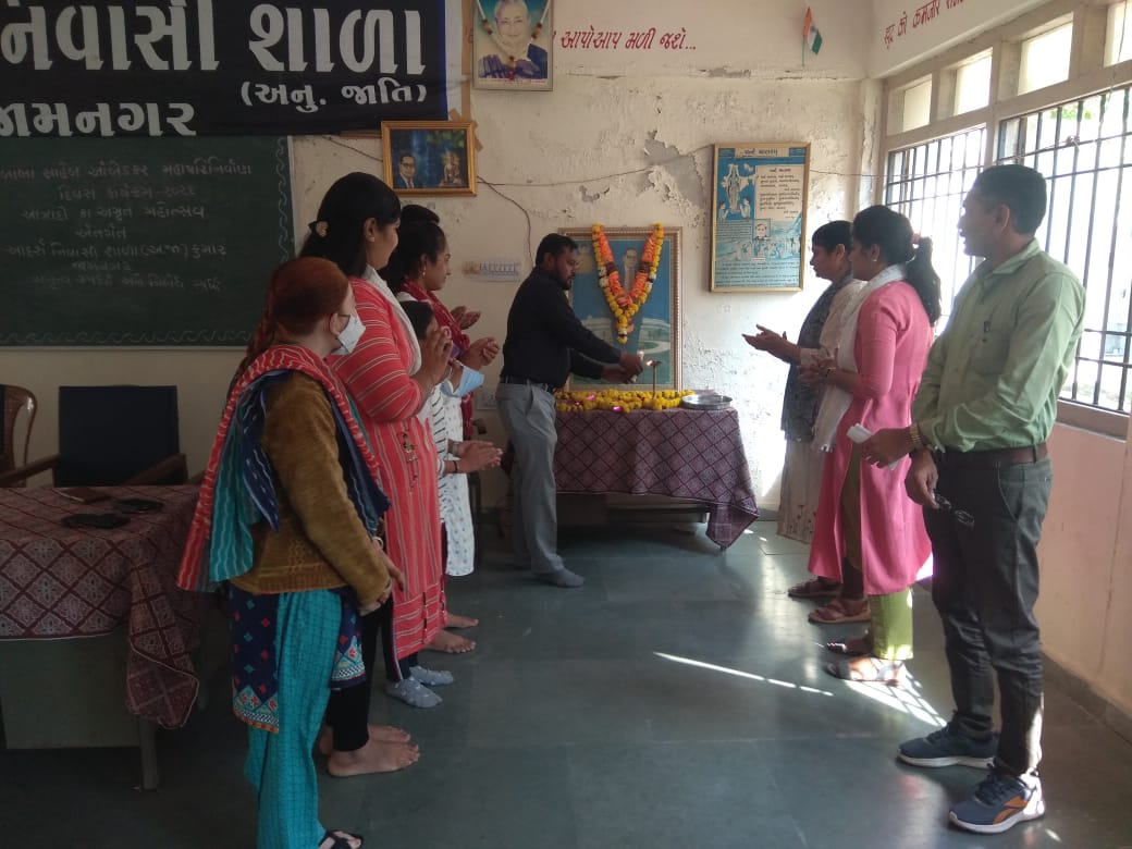 કાર્યક્રમમાં આદર્શ નિવાસી શાળા (અ.જા.-કુમાર)ખાતે નિબંધ સ્પર્ધાપ્રશ્નોતરી સ્પર્ધાનું આયોજન કરીવિજેતા વિદ્યાર્થીઓને પારિતોષિક આપી સન્માનિત કરવામાં આવ્યાં હતા તથા ડૉ. બાબાસાહેબ આંબેડકરના ફોટાને નમન કરી ફુલહાર કરી શ્રધ્ધાસુમન અર્પણ કર્યા હતા. શાળાના આચાર્યશ્રીએ પ્રાસંગિક ઉદબોધન કર્યું હતું તેમજ આભાર વિધિ નાયબ નિયામકશ્રી ડૉ. ઘનશ્યામ વાઘેલાએ કરેલ હતી તેમ નાયબ નિયામક, અનુસૂચિત જાતિ કલ્‍યાણજામનગરની યાદીમાં જણાવ્યું છે.