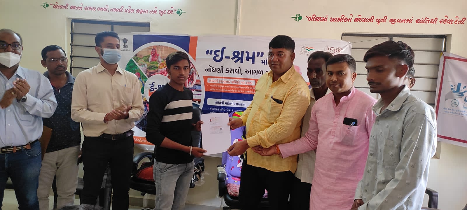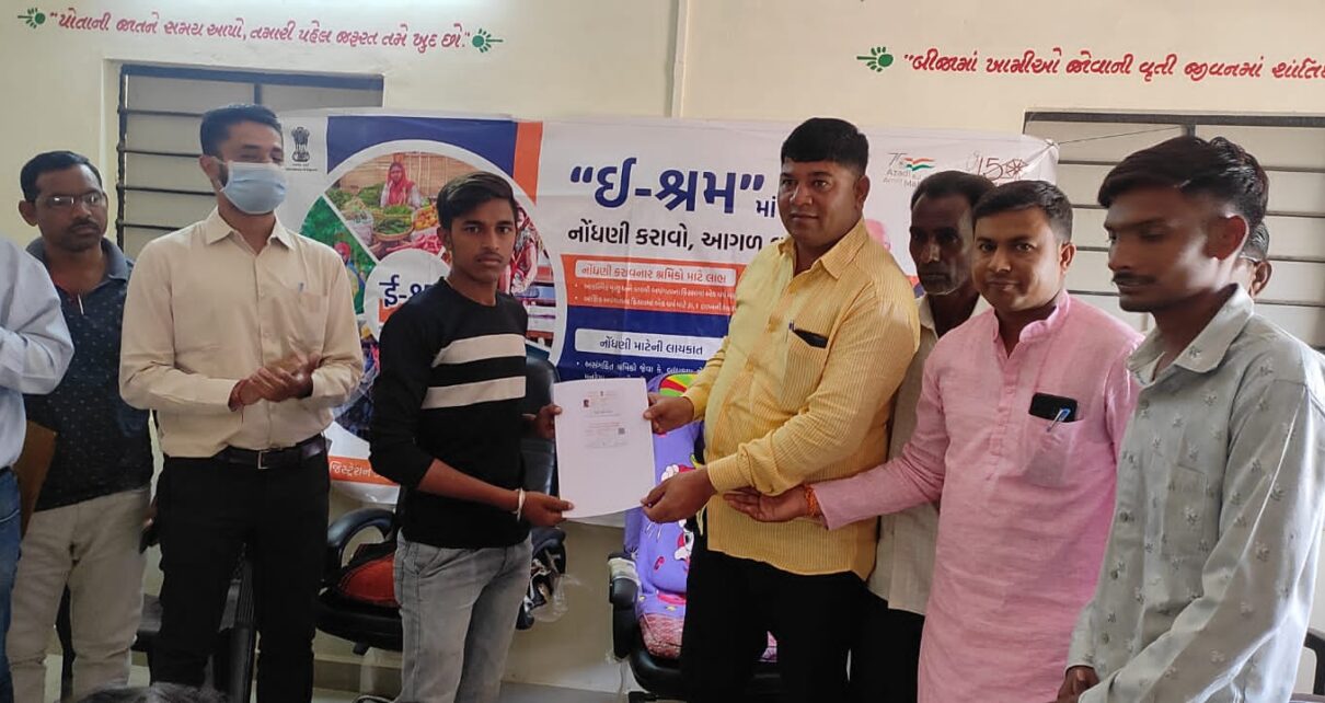 ધ્રાંગધ્રા તાલુકાના નિરાળી ગામે ઇ-શ્રમ કાડઁના નોંધણી માટે કાયઁક્રમ યોજાયો.