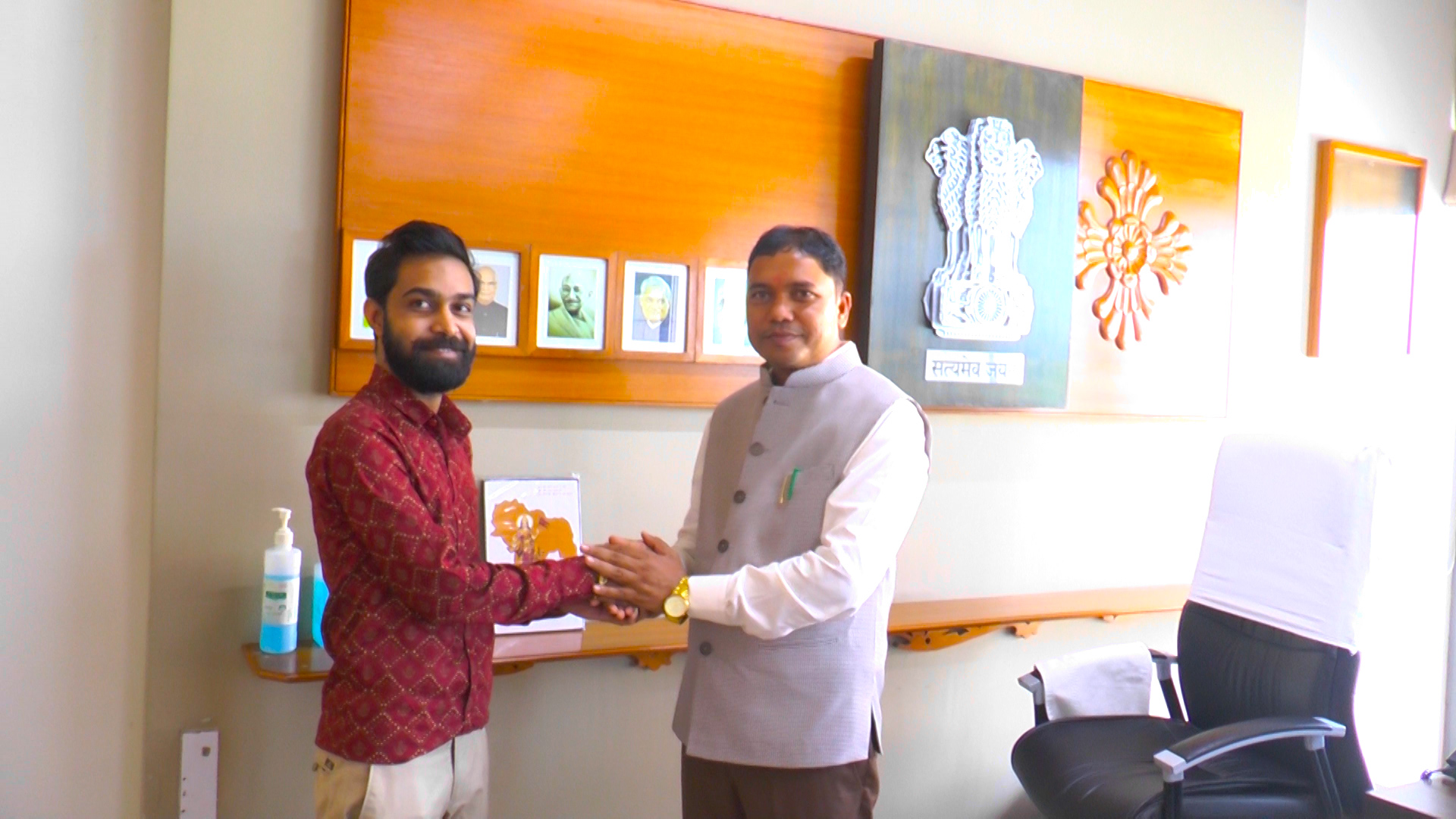 તાજેતરમાંજ નવી મંત્રી મંડળ ની રચના થતા પ્રાંતિજ-તલોદ ના ધારાસભ્ય ગજેન્દ્રસિંહ પરમાર ની રાજયકક્ષા ના મંત્રી અન્ન પુરવઠા અને ગ્રાહક સુરક્ષા બાબત મંત્રી પદ મળતા પ્રાંતિજ તાલુકા પત્રકાર સંધ ના પત્રકારો દ્રારા ગાંધીનગર વિધાનસભા સચિવાલય મા આવેલ તેમની ઓફિસ ખાતે જઇ ને તેવોને ફુલોનો ગુલદસ્તો આપીને મોઢુ મીઠુ કરાવી શુભેચ્છાઓ શુભકામનાઓ પાઠવી હતી તો આ પ્રસંગે તાલુકા પત્રકાર ના  સંજયભાઈ રાવલ  , રતિભાઇ ટેકવાણી  , મિતેશભાઇ શાહ  , કાળુસિંહ રાઠોડ  , જીલ રાવલ  , રમેશભાઇ મિસ્ત્રી  , સંજયભાઇ પટેલ  , ઉમગ રાવલ  , હાર્દિક બ્રહ્મભટ્ટ  , સુરેશ રાવલ  , મન રાવલ સહિત ઉપસ્થિત રહી ને મંત્રી ગજેન્દ્રસિંહ પરમાર ને શુભેચ્છા શુભકામનાઓ પાઠવી હતી તો તાલુકા ભાજપ યુવા મોરચા દ્રારા પણ મંત્રી ગજેન્દ્રસિંહ પરમાર ની શુભેચ્છા મુલાકાત લીધી હતી તેવોએ પણ મંત્રી ગજેન્દ્રસિંહ પરમાર ને ફુલો નો ગુલદસ્તો આપી અભિનંદન શુભેચ્છાઓ શુભકામનાઓ પાઠવી હતી
