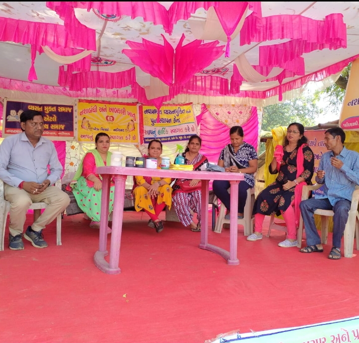 ખેડા જિલ્લાના મહુધા તાલુકાના મીનાવાડા દશામાં યાત્રા ધામ ખાતે નશાબંધી પ્રચાર પ્રસાર નું કાર્યક્રમ યોજાયો હતો જેમાં મહુધા નડિયાદ નશાબંધી અધિકારી દ્વારા સુંદર માર્ગદર્શન આપ્યું હતું સાથે સાથે ( O.P.D ) ઓ.પી.ડી મેડિકલ કેમ્પનું પણ આયોજન કરવામાં આવ્યું હતુ જેમાં ખેડા નશાબંધી અધિક્ષક શ્રી રમીલાબેન પટેલ તથા નશાબંધી સ્ટાફ નવપ્રભાત વ્યસન મુક્તિ નો સ્ટાફ ઉપસ્થિત રહ્યા હતા અને આ કાર્યક્રમ માં મીનાવાડા સરપંચ શ્રી સામંતસિંહ સોઢા તથા ગ્રામજનો મોટી સંખ્યામાં હાજર રહ્યા હતા