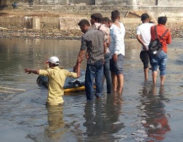 રાજકોટના કેસરી હિન્દ પુલ નીચે બેડીપરા નજીક બેઠા પુલ પર આજી નદીના પાણીમાં આજે બપોરના સમયે મુસાફર ભરેલી રિક્ષા પસાર થતી હતી. આ સમયે અચાનક રિક્ષા નદીમાં ગરકાવ થઇ હતી. જાેકે મુસાફર અને રિક્ષા ચાલકની સમય સુચકતાના કારણે કોઈ જાનહાનિ થઈ નથી. પુલ તૂટેલો હોવાથી વાહનની અવરજવર થઇ શકતી નહોતી. પરંતુ રિક્ષાચાલકને ખ્યાલ ન હોવાથી તેણે રિક્ષા ત્યાંથી ચલાવી નીકળવા પ્રયાસ કર્યો હતો. પરંતુ તે ત્યાંથી પસાર થઇ શક્યા નહોતા. બનાવની જાણ થતા જ સ્થાનિક લોકો એકઠા થઇ ગયા હતા અને ફાયર વિભાગને જાણ કરી હતી. બાદમાં સ્થાનિક લોકો અને ફાયર વિભાગની ટીમ દ્વારા મહેનત કરી એક કલાક બાદ રિક્ષાને દોરડું બાંધી નદીમાંથી બહાર કાઢી હતી. ઉલ્લેખનીય છે કે નદીમાં રિક્ષા ખૂંચી જતા રિક્ષાચાલક મહમદભાઈને અંદાજિત ૩૦થી ૩૫ હજારનું રિક્ષામાં નુકસાન થયું છેરાજકોટના કેસરી હિન્દ પુલ નીચે બેડીપરા નજીક આવેલા બેઠા પુલ પરથી મુસાફર ભરેલી રિક્ષા પસાર થઇ રહી હતી. ત્યારે ચાલકને જાણ બહાર પુલની પાળી બહાર રિક્ષાનું વ્હીલ જતું રહેતા નદીમાં ગરકાવ થઇ હતી. સ્થાનિક લોકો અને ફાયર વિભાગ દ્વારા રેસ્ક્યૂ કરી રીક્ષા બહાર કાઢવામાં આવી હતી. જાેકે સદનસીબે મુસાફરો અને રિક્ષાચાલકે સતર્કતા દાખવતા કોઈ જાનહાનિ થઈ નથી.