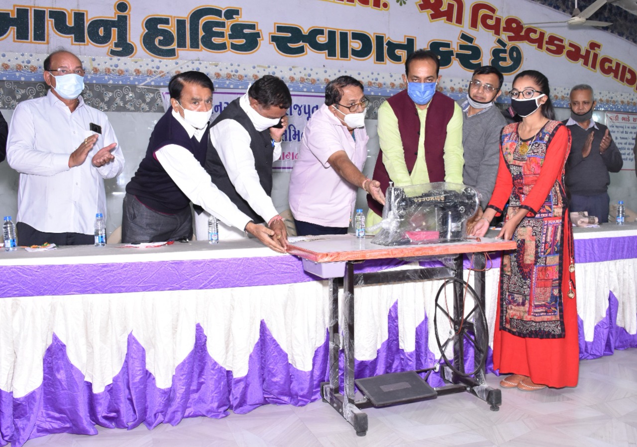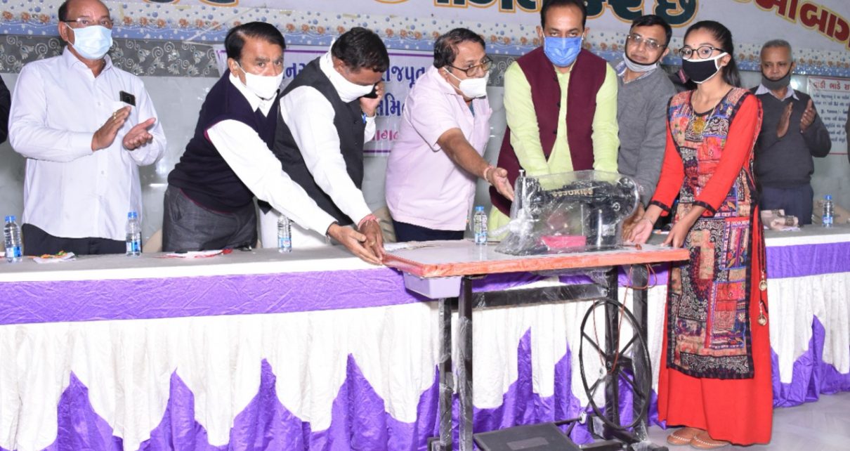 રાજ્યમંત્રી શ્રી ધર્મેન્દ્રસિંહ જાડેજાના હસ્તે જામનગર જિલ્લા રાજપૂત સમાજ સમૂહ લગ્ન સમિતિના ૩૫ સિલાઈ મશીનનું વિતરણ કરાયું