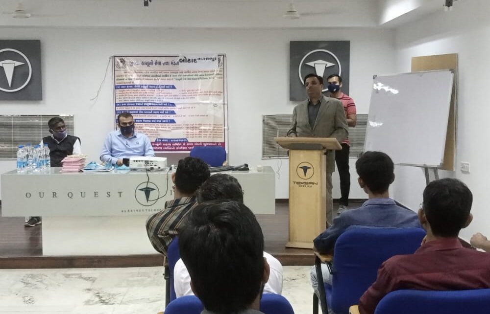 ભારત દેશના ૭૫માં સ્વતંત્ર દિન નિમિત્તે નાલ્સા તથા જી.એસ.એલ. એ.ની સુચના મુજબ પાન ઇન્ડિયા કાર્યક્રમ અંતર્ગત બોટાદ જિલ્લા કાનૂની સેવા સત્તા મંડળના અધ્યક્ષ એ.આઈ.રાવળ ના વડ પણ અને માર્ગદર્શન હેઠળ રાણપુર તાલુકા કાનૂની સેવા સમિતિના ચેરમેન એ.કે માવળંકર ના નેજા હેઠળ રાણપુર શહેરમાં ટેક્ષપીન બેરીંગ કંપની ખાતે કાનુની શિબિર કરવામાં આવી હતી જેમાં રાણપુર કાનૂની સેવા સમિતિ રાણપુર અધ્યક્ષ એ.કે માવળંકર તથા સેક્રેટરી વિજયભાઈ ચૌહાણ રાણપુર બાર એસોસિએશનના વકીલ ડી.પી ભરાડીયા દ્વારા મજુરોના કાયદા,મહિલાના અધિકાર,લીગલ એડ,બંધારણમાં આપવામાં આવેલ અધિકારો વિશે માર્ગદર્શન આપવામાં આવ્યું હતુ.આ કાનુની શિબિર માં ટેક્ષપીન બેરીંગ કંપનીના માલીક તેમજ કર્મચારીઓને કાનુની માહીતી આપવામાં આવી હતી.