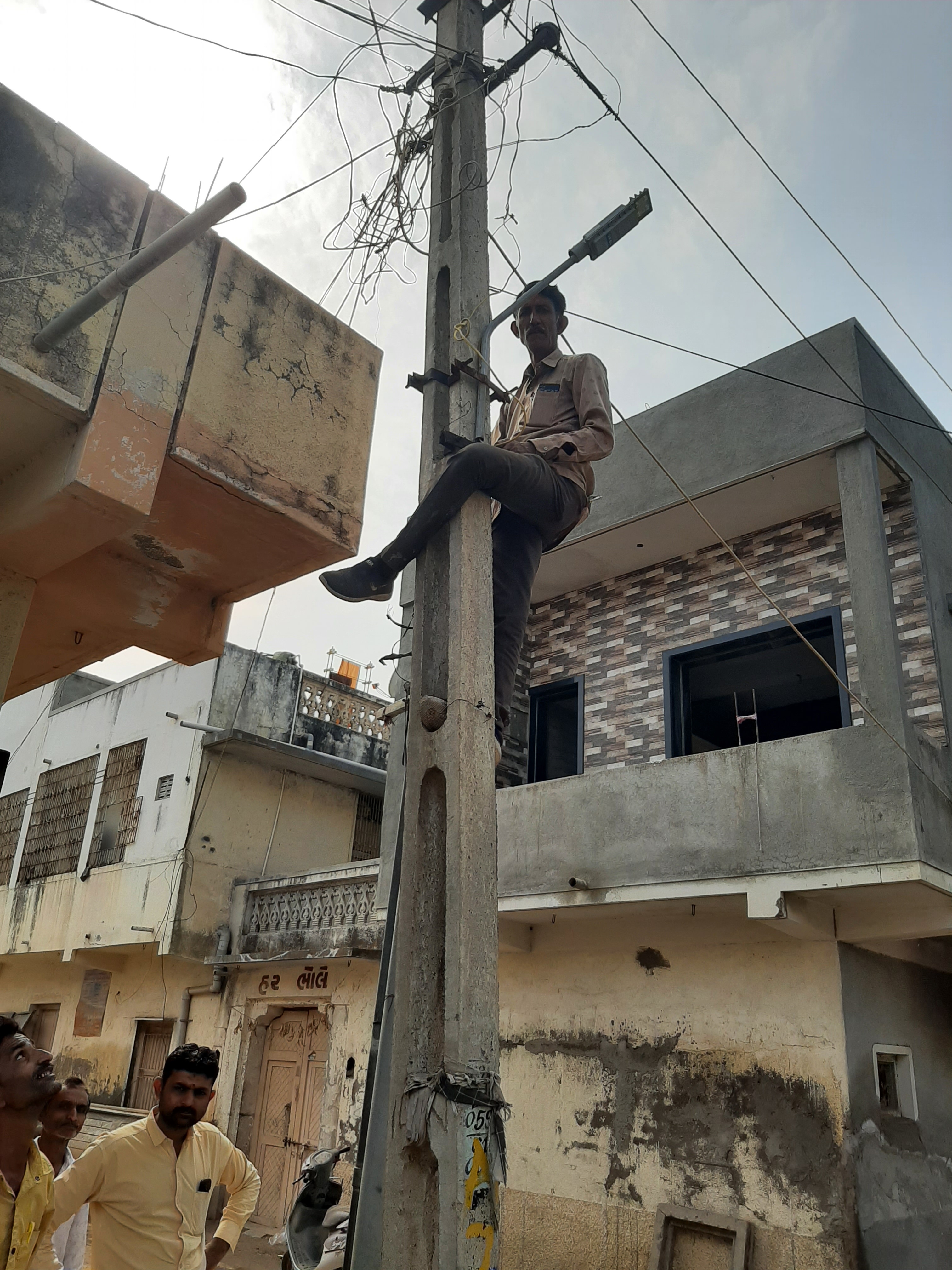 પ્રસ્તુત તસવીરમાં જોઈ શકો છો કે નગરપાલિકા દ્વારા સ્ટ્રીટ લાઈટ અંગે કામગીરી થઈ રહી છે. પરંતુ સવાલ એ છે કે આ કર્મચારી પણ રોજમદાર કર્મચારી તરીકે ફરજ બજાવે છે. રવિવાર હોય કે જાહેર રજા હોય તેમણે તો કામ કરવાનું જ કારણ કે તેઓ તો રોજમદાર કર્મચારી છેને? હા, રોજમદારની ફરજ તો દૈનિક ધોરણે કામગીરી કરવાની જ.. આવાં રોજમદાર કર્મચારીઓને પણ પર્યાપ્ત માત્રામાં રજા મળવી જોઈએ એવો સૂર પણ રોજમદારોમાં ઉઠી રહ્યો છે. આમ પણ રોજમદાર કર્મચારીઓને કારણે કામગીરીમાં ગતિશીલતા આવે છે એ તો સર્વ વિદિત છે..