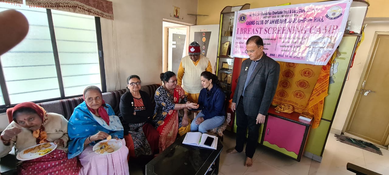 લાયન્સ ક્લબ ઓફ અમદાવાદ જોધપુર હિલ . ગાયત્રી પરિવાર નારણપુરા દ્વારા ” ફ્રી સ્ત્રી બ્રેસ્ટ કેન્સર સ્ક્રિનિંગ કેમ્પ” તથા ફ્રી આયુર્વેદિક નાડીવૈદ્ય ડો. વંદના પંચાલ દ્વારા તપાસનું આયોજન અમદાવાદ નવા વાડજ વિસ્તારમાં ૩૦,દેવપથ ફ્લેટ નારણપુરા પોલીસ પાસે તારીખ : ૨૦/૧૨/૨૧, સમય ૧૦.૦૦ થી ૪.૦૦ રાખવામાં આવ્યું હતું જેમાં ૪૮બહેનોએ ચેકઅપ કરાવવાનો લાભ લીધો હતો.