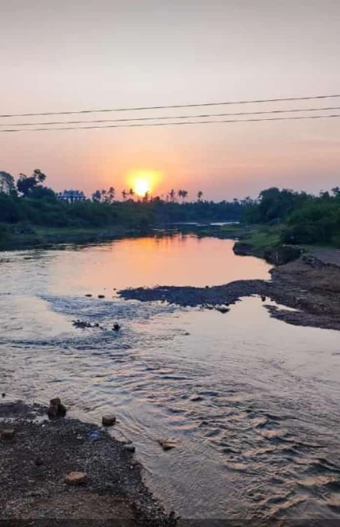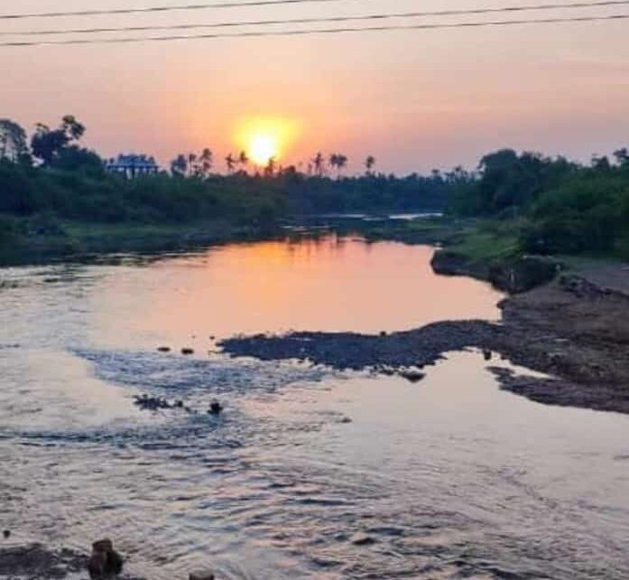 સુર્યાસ્ત સમયે નદી સાથેનો કુદરતી નજારો…