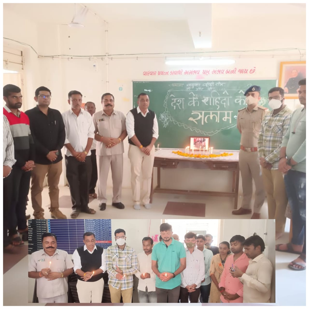 જેમાં તાલાળા મામલતદાર દડુભાઈ ગીડા પી.એસ.આઇ મકવાણા તાલુકા પંચાયત ના પ્રમુખ રામસીંહભાઈ પરમાર , તેમજ તાલુકા પંચાયત નો સ્ટાફ ગણ હાજર રહેલ અને દેશના શહીદો ના અમર આત્માને શાંતિ અર્થે પરમાત્માને પ્રાર્થના કરી અને પુષ્પાંજલિ અર્પણ કરી હતી…