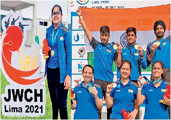 ભારતની ૧૪ વર્ષીય શૂટર નામ્યા કપૂરે પોતાની પ્રથમઔઆઇએસએસએફ જુનિયર વર્લ્‌ડ ચેમ્પિયનશિપમાં કમાલ કરી છે. તેણે ૨૫ મીટર પિસ્તોલ ઇવેન્ટમાં ભારતની સ્ટાર શૂટર મનુ ભાકરને હરાવીને ગોલ્ડ મેડલ પોતાના નામે કરી હતી. નામ્યાએ ફાઇનલમાં ૩૬નો સ્કોર કર્યો હતો. ફ્રાન્સની કેમિલીએ સિલ્વર તથા ૧૯ વર્ષીય ઓલિમ્પિયન મનુ ભાકરે બ્રોન્ઝ મેડલ જીત્યો હતો. ભારતની રિધમ સાંગવાન ચોથા ક્રમે રહી હતી. ભારતે અત્યાર સુધી ટૂર્નામેન્ટમાં આઠ ગોલ્ડ, છ સિલ્વર તથા ત્રણ બ્રોન્ઝ સહિત ૧૭ મેડલ્સ જીત્યા છે. બીજી તરફ યુવા શૂટર ઐશ્વર્ય પ્રતાપસિંહ તોમરે મેન્સ ૫૦ મીટર રાઇફલ થ્રી પોઝિશનની ફાઇનલમાં વર્લ્‌ડ રેકોર્ડ સર્જીને ગોલ્ડ મેડલ જીત્યો તોમરે ક્વોલિફિકેશનમાં ૧૧૮૫નો સ્કોર નોંધાવીને જુનિયર વર્લ્‌ડ રેકોર્ડની બરોબરી કરી હતી. તેણે ફાઇનલમાં ૪૬૩.૪ પોઇન્ટ હાંસલ કરીને જુનિયર વર્લ્‌ડ રેકોર્ડ નોંધાવ્યો હતો. તે ફ્રાન્સના લુકાસ ક્રાઇજ્સ કરતાં સાત પોઇન્ટ આગળ હતો. અમેરિકાના ગેબિન ર્બાનિકે આ ઇવેન્ટમાં બ્રોન્ઝ જીત્યો હતો. જેમાં મિક્સ, વિમેન્સ તથા મેન્સ ટીમ ચેમ્પિયનશિપ સામેલ છે. આ ઉપરાંત ભારતે મેન્સ ૧૦ મીટર રાઇફલ ટીમ ઇવેન્ટમાં પણ ગોલ્ડ મેડલ પોતાના નામે કર્યો હતો. ભારત બાદ અમેરિકા ૧૨ મેડલ સાથે બીજા તથા ઇટાલી છ મેડલ સાથે ત્રીજા ક્રમે છે. ટોક્યો ઓલિમ્પિક બાદ આ એવી ઇવેન્ટ છે જેમાં ઘણી કેટેગરી સામેલ છે તથા આ ચેમ્પિયનશિપમાં ૩૨ દેશના લગભગ ૩૭૦ શૂટર્સ ભાગ લઈ રહ્યા છે.