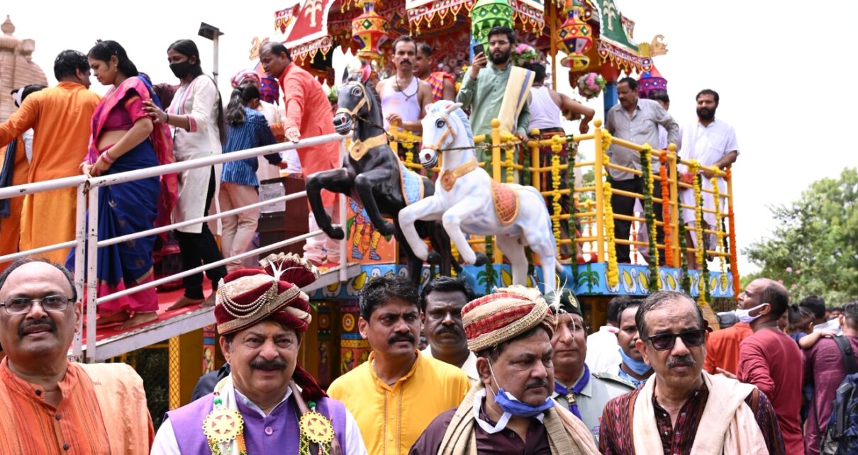 અડાલજ ખાતેના ત્નઝ્રછઇઝ્રના પ્રાંગણ ખાતે યોજાઇ રથયાત્રા મહેસૂલ મંત્રી રાજેન્દ્ર ત્રિવેદી ખાસ ઉપસ્થિત રહ્યા ઃ રથયાત્રામાં મોટી સંખ્યામાં ભક્તો જાેડાયા