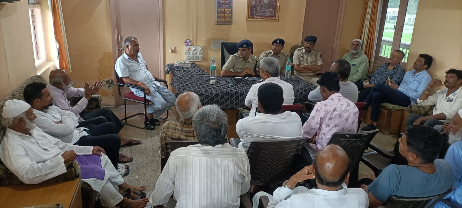 ગીર સોમનાથ જિલ્લા ના કોડીનાર પોલીસ સ્ટેશન માં એ.એસ.પી.ઓમ પ્રકાશ જાટ ના  અધ્યક્ષ સ્થાને અને કોડીનાર પોલીસ સ્ટેશન ના પોલીસ ઇન્સ્પેક્ટર શ્રી અશોક મકવાણા તથા પોલીસ સબ ઇન્સ્પેક્ટર  એસ.એન.ચુડાસમા ની હાજરી માં આગામી તહેવાર ઈદ-ઉલ-અઝા ના તહેવાર ને લય ને શાંતી સમીતી ની મીટીંગ મળી હતી આ તકે કોડીનાર ચેમ્બર ઓફ કોમર્સ ના પ્રમુખ હરીભાઈ વિઠલાણી નગરપાલિકા ના ઉપ પ્રમુખ સુભાષભાઈ ડોડીયા જીશાન ભાઈ નકવી હાજી રફીકભાઈ જુણેજા અવેસ બાપુ કાદરી સંજર બાપુ કાદરી ચંદુભાઈ આસર મહેશભાઈ મકવાણા એડવોકેટ સંજયભાઈ જોષી રાજુભાઈ બાંભણિયા મેમણ સમાજ ના પ્રમુખ રફીક ભાઈ આર‌.કે ઈકબાલ ભાઈ મકલાઈ હાજી યુનુસ ભાઈ નાથાણી ફૈસલ ભાઈ ડબાવાલા એહમદ ભાઈ બેલીમ યુસુફ અલી ભાઈ બેહરુની સહિત તમામ પત્રકાર મિત્રો ઉપસ્થિત રહ્યા હતા