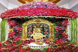 સ્વામિનારાયણ મંદિર વડતાલધામ સંચાલિત વિશ્વવિખ્યાત સાળંગપુરધામમાં શ્રી કષ્ટભંજનદેવ હનુમાનજી મંદિર ખાતે ગુરુપૂર્ણિમાં નિમિત્તે શાસ્ત્રી સ્વામી હરિપ્રકાશદાસજી (અથાણાવાળા)ની પ્રેરણાથી એવ કોઠારી વિવેકસાગરદાસ સ્વામીના માર્ગદર્શનથી શ્રી કષ્ટભંજન દેવ હનુમાનજી દાદાને સુવર્ણ વાઘાનો દિવ્ય શણગાર કરી મંગળા આરતી પૂજારી સ્વામી દ્વારા કરવામાં આવેલ હતી. સદગુરુ ગોપાળાનંદ સ્વામીનું પૂજન-અર્ચન કરી દાદાના સિંહાસનને કલરફુલ પુષ્પો વડે શણગાર કરી શ્રી કષ્ટભંજન દેવ હનુમાનજી મહારાજની સુવર્ણ શણગાર આરતી કોઠારી વિવેકસાગરદાસ સ્વામી-અથાણાવાળા તથા સદ્ગુરુ ગોપાળાનંદ સ્વામીની આરતી લક્ષ્મીપ્રસાદદાસજી સ્વામી દ્વારા કરવામાં આવેલ તેમજ ગુરુપૂર્ણિમા પર્વની હાર્દિક શુભકામના પાઠવી હતી. દાદાના ભક્તો વડે વાજતે-ગાજતે દાદાને ધજા અર્પણ કરવામાં આવેલ, દાદાને સિંહાસનને કલરફુલ પુષ્પો વડે શણગાર કરવામાં આવ્યો હતો. દાદાના શણગારનો ભાવિકોએ રૂબરૂ દર્શન કરી ધન્યતા અનુભવી હતી. તેમજ દેશ-વિદેશમાં વસતા હરિભક્તોએ હનુમાનજીદાદાના શણગારના ઓનલાઈન દર્શનનો લાભ લઈ ધન્યતા અનુભવી હતી.બોટાદ જિલ્લામાં આવેલા વિશ્વ વિખ્યાત અને આસ્થાના પ્રતિક એવા સાળંગપુર ગામે કષ્ટભંજનદેવ હનુમાનજીદાદાને ગુરુપૂર્ણિમાના પાવન દિવસ નિમિત્તે સિંહાસનને કલરફુલ પુષ્પો વડે શણગાર કરવામાં આવ્યો હતો.