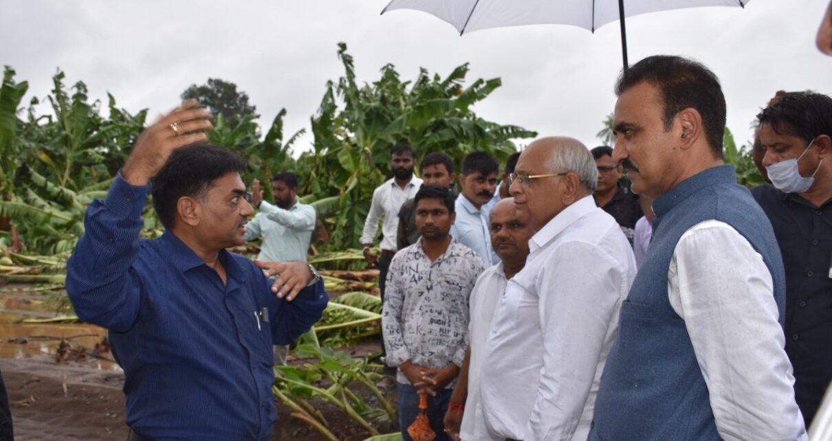 વરસાદથી કેળના પાકને થયેલ નુકશાન-તારાજીની વિગતો ખેતરમાં જઇને મેળવતા મુખ્યમંત્રીશ્રી