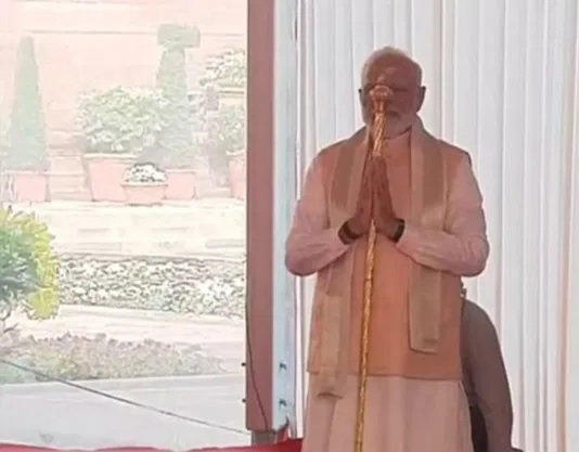 આજે નવા સંસદ ભવનમાં સ્પીકરની ખુરશી પાસે સેંગોલને સ્થાપિત કરવામાં આવ્યો હતો. પીએમ મોદીએ નવા સંસદનું પણ ઉદ્ઘાટન કર્યું. સેંગોલ સંભાળ્યા બાદ પીએમ મોદી આંખો બંધ કરીને પ્રાર્થના કરતા જાેવા મળ્યા હતા. પીએમ મોદી સ્પીકરની ખુરશી તરફ જઈ રહ્યા હતા, તે સમયે તમામ સંતો મંત્રોચ્ચાર કરી રહ્યા હતા. પરંપરાગત પોશાકમાં સેંગોલ સાથે સંસદમાં પ્રવેશતા જાેવા મળ્યા હતા. પીએમ નરેન્દ્ર મોદી અને લોકસભાના સ્પીકર ઓમ બિરલાએ વૈદિક વિધિ પ્રમાણે પૂજા કરી હતી. પૂજા કાર્યક્રમમાં સામેલ થયા બાદ પીએમ મોદીએ સેંગોલને દંડવત પ્રણામ કર્યુ હતું. સેંગોલ મળ્યા બાદ પીએમ મોદી થોડીવાર તેમની સામે જાેતા રહ્યા. પીએમએ સેંગોલને નમન પણ કર્યુ હતું. પીએમ મોદી સાથે લોકસભા સ્પીકર ઓમ બિરલા હાજર રહ્યા હતા. સેંગોલની સ્થાપના બાદ પીએમ મોદીએ દીપ પ્રગટાવ્યો હતો. લોકસભા સ્પીકર ઓમ બિરલા આખો સમય તેમની સાથે જાેવા મળ્યા હતા. જ્યારે પીએમ મોદી સંસદમાં સેંગોલ લગાવી રહ્યા હતા ત્યારે લોકસભા સ્પીકર પાછળ ઉભા હતા. પીએમ મોદીએ તેમને ઈશારામાં બોલાવ્યા. ત્યારબાદ ઓમ બિરલા પીએમ મોદી સાથે આવ્યા હતા. સેંગોલની સ્થાપના બાદ પીએમ મોદીએ તમામ સાધુઓને પ્રણામ કર્યા. સંતોએ પીએમ મોદીના માથા પર હાથ રાખીને આશીર્વાદ આપ્યા હતા.