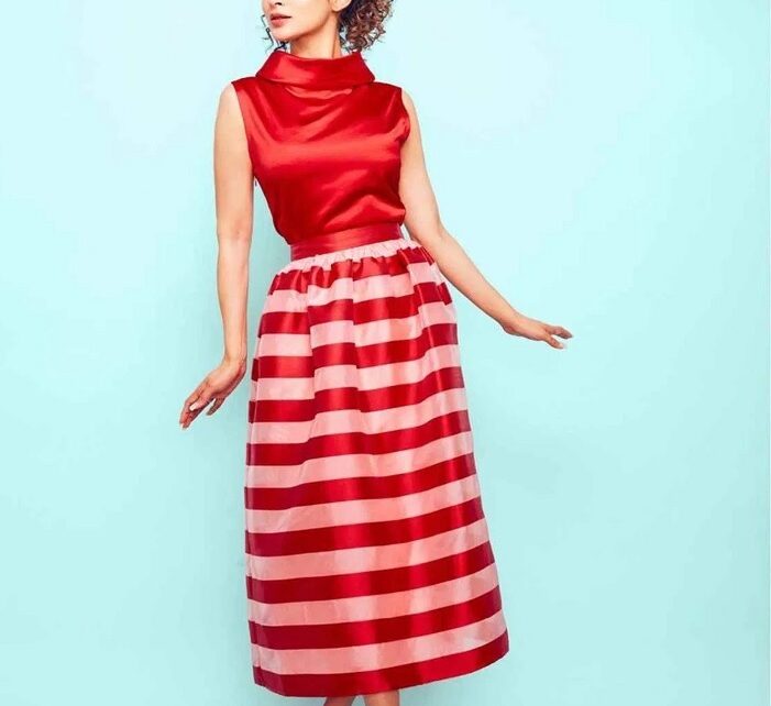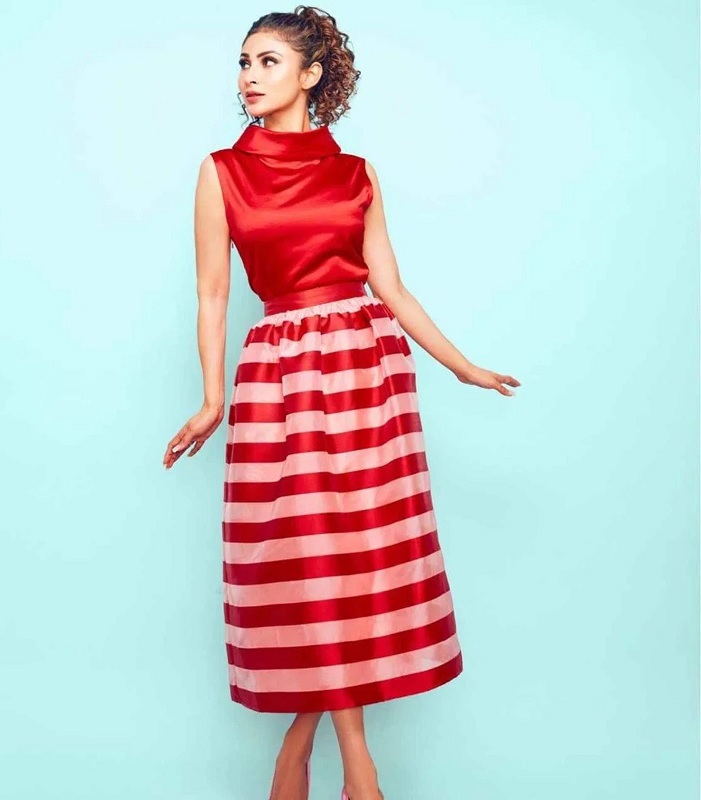 મૌની રોય સોશિયલ મીડિયા પર અવાર-નવાર સ્ટાઈલિશ અંદાજમાં પોતાની તસવીરો શેર કરે છે. એક્ટ્રેસે બાર્બી ડોલ લુકમાં પોતાની તસવીરો શેર કરી છે. એક્ટ્રેસનો આ બાર્બી ડોલ લુક ફેન્સ વચ્ચે ખૂબ જ વાયરલ થઈ રહ્યો છે. મૌની રોયે ખૂબ જ સુંદર રેડ કલરનું સિલ્ક ટૉપ પહેરેલું છે. આ ટૉપ સ્લીવલેસ છે. તેમાં ટર્ટલ નેકલાઈન છે. જે એક્ટ્રેસના લુકને ખૂબ જ સ્ટાઈલિશ બનાવી રહ્યો છે. તેની સાથે એક્ટ્રેસે રેડ અને વ્હાઈટ રંગની લાઈનિંગવાળી લોન્ગ સ્કર્ટ પહેરેલું છે. એક્ટ્રેસનો આ લુક ખૂબ જ અટ્રેક્ટિવ છે. મૌનીનો આ લુક ફેન્સને ખૂબ જ પસંદ આવી રહ્યો છે. એક્ટ્રેસના આ લુકને પિન્ક કલરના સ્ટિલેટોઝ પહેરેલું છે. વાળને કર્લ હેર સ્ટાઈલ આપીને પોનીટેલમાં બાંધેલા છે. આ હેરસ્ટાઈલ એક્ટ્રેસનાં લુકને હાઈલાઈટ કરી રહ્યો છે. મૌની રોયે આ રેડ એન્ડ વ્હાઈટ ડ્રેસમાં અલગ અંદાજમાં ફોટોશૂટ કરાવ્યું છે. એક્ટ્રેસ આ લુકમાં ખરેખર ખૂબ જ સુંદર દેખાઈ રહી છે. આ પ્રકારનો ડ્રેસ તેને ડિફરન્ટ લુક આપી રહ્યો છે.