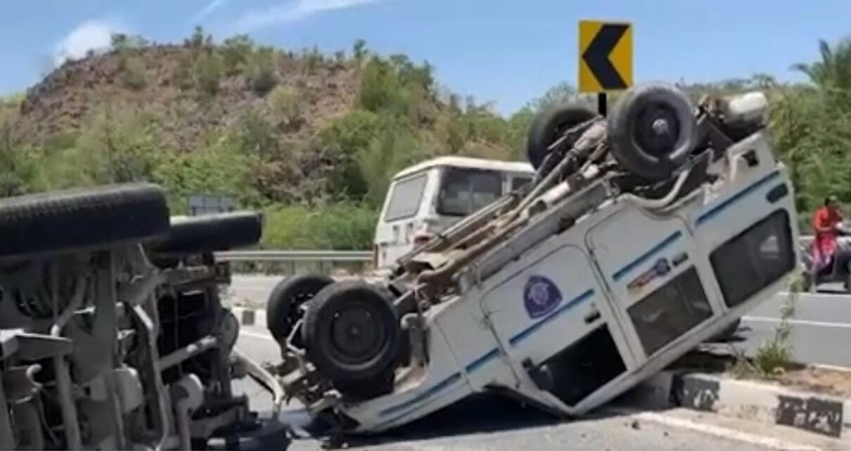 *પોલિસ લખેલી 3 ગાડીઓ અકસ્માત ની ભોગ બની, અકસ્માત મા સદનબીએ જાનહાની ટલી*