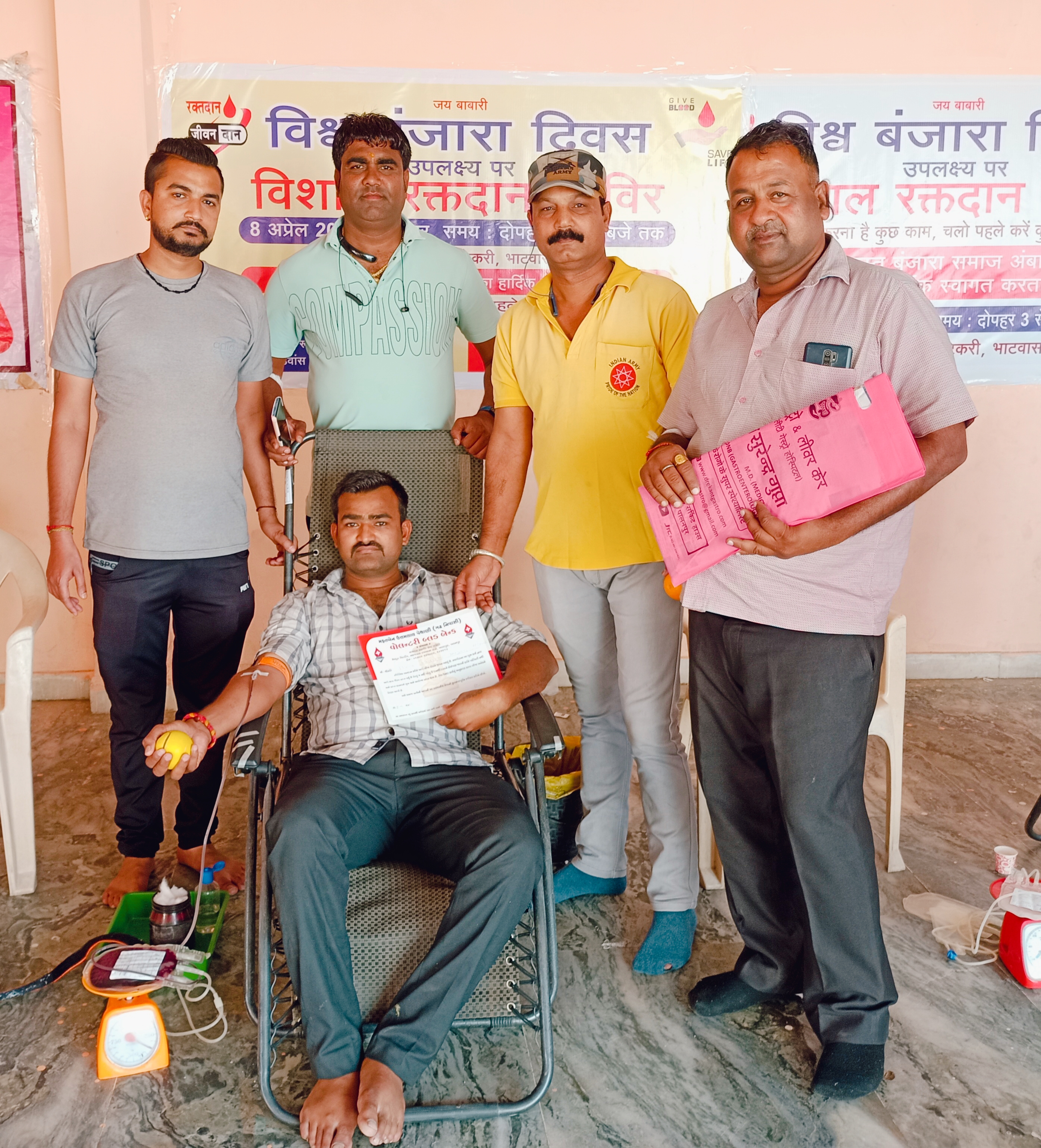 યાત્રાધામ અંબાજી ખાતે 8 એપ્રિલે બંજારા દિવસ નિમિત્તે અંબાજીમાં આવેલી બાબા રામદેવપીર ની ટેકરી પર રક્તદાન શિબિર નું આયોજન કરવામાં આવ્યું હતું. જેમાં મોટાભાગે બંજારા સમાજના લોકો સાથે અન્ય સેવાભાવી લોકો જોડાયા હતા. રક્તદાન શિબિર માં લોકોએ પોતાનું રક્ત નો દાન કરી સેવાકીય કામગીરી કરી હતી. રક્તદાન એ મહાદાન છે અને તેના ઉદ્દેશ્ય ને લઈ મોટી સંખ્યામાં આજે બંજારા દિવસ નિમિત્તે લોકો આ શિબિરમાં પહોંચ્યા હતા અને રક્તનું દાન કરી માનવ કલ્યાણ માટે સહભાગી થયા હતા. રક્તદાન કરનારા લોકોને પ્રમાણપત્ર પણ આપવામાં આવ્યું હતું. દેશમાં કાર્યરત વિવિધ સંસ્થાઓ અને સેવા ભાવિ ટ્રસ્ટો અને લોકો દ્વારા રક્તદાન શિબિર નું આયોજન કરવામાં આવતું હોય છે. મોટાભાગે કોઈપણ અકસ્માત કે બીમારીમાં લોકો ને રક્તની જરૂર પડતી હોય છે. ત્યારે અમુક લોકો ને રક્ત ને લઈ હાલાકી ભોગવી પડતી હોય છે. તેને ધ્યાને રાખી દેશમાં કાર્યરત સેવાભાવી સંસ્થાનો અને લોકો દ્વારા રક્તદાન શિબિર નું આયોજન કરવામાં આવતું હોય છે. જેથી જરૂરત મંદ લોકોને આસાની થી રક્ત મલી શકે અને તેમનું જીવન બચી શકે તે ઉદેશ થી લોકો રક્તદાન કરી પોતાનો ફરજ નિભાવતા હોય છે .આજે અંબાજી માં રક્તદાન શિબિર નું આયોજન કરવામાં આવ્યું હતું