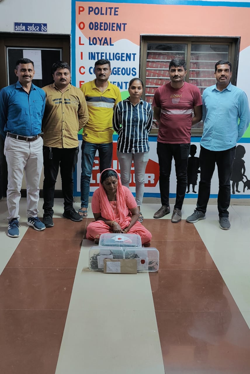 જે અનુસંઘાને *શ્રી ગૌતમ પરમાર સાહેબ, પોલીસ મહાનિરીક્ષકશ્રી ભાવનગર વિભાગ, ભાવનગર* નાંઓની જરૂરી સુચનાં અને માર્ગદર્શન હેઠળ *અમરેલી પોલીસ અધિક્ષકશ્રી હિમકર સિંહ સાહેબ* નાઓએ *એસ.ઓ.જી. પોલીસ ઈન્સ્પેક્ટરશ્રી એસ.જી.દેસાઇ,* તથા *એસ.ઓ.જી. પોલીસ સબ ઇન્સ્પેક્ટરશ્રી એચ.જી.મારૂ,* તથા *એસ.ઓ.જી. ટીમ* ને અમરેલી જીલ્લામાં કેફી પદાર્થોનું ગેરકાયદેસર રીતે વેંચાણ કરતા ઈસમોને ઝડપી પાડી યુવાઘનને બરબાદીનાં રસ્તે જતા અટકાવવા જરૂરી સુચનાં અને માર્ગદર્શન આપેલ હોય, *એસ.ઓ.જી. પોલીસ ઈન્સ્પેક્ટરશ્રી એસ.જી.દેસાઇ,* તથા *એસ.ઓ.જી.ટીમ* અમરેલી સીટી પોલીસ સ્ટેશન વિસ્તારમાં એ.ટી.એસ. ચાર્ટર લગત પેટ્રોલીંગમાં હતા. દરમિયાન ખાનગી બાતમીરાહે હકિકત મળેલ કે, અમરેલી શહેરમાં રહેતા જેતુનબેન ઉર્ફે નજુબેન અબુશા ઓઠા, રહેવાસી-અમરેલી, જુમા મસ્જીદ, મોટા કસ્બાવાડ, ગુદીયા ચોરા પાસે, તા.જી.અમરેલીવાળી પોતાના કબ્જા ભોગવટાના રહેણાંક મકાને ગેરકાયદેસર માદક પદાર્થ ગાંજાનો જથ્થો રાખી વેચાણ કરે છે. તેવી ચોક્કસ અને આધારભુત બાતમી હકિકત અન્વયે સદરહું જગ્યાએ રેઇડ કરતા એક મહિલાને ઝડપી પાડવામાં સફળતા મળેલ છે.