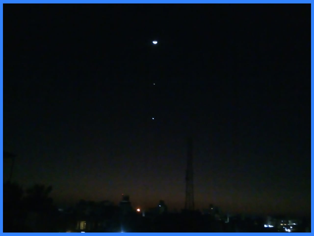 ગતરોજ સૂર્યાસ્ત બાદ ગુજરાતનાં આકાશમંડળમાં પશ્ચિમ દિશામાં ચંદ્ર, ગુરુ અને શુક્રની યુતિનો અલૌકિક નજારો જોવા મળ્યો હતો. મળતી માહિતી મુજબ મીન રાશિમાં ચંદ્ર ૨૫ અંશ, ગુરુ ૧૫ અંશ અને શુક્ર ૬ અંશની સ્થિતિએ ત્રણેય સમાન અંતરે ઊભી લીટીમાં હોઈ આ સુંદર દ્રશ્ય નરી આંખે જોવાનું આપણાં માટે શક્ય બન્યું હતું. આવી જ બીજી આકાશીય ઘટના આગામી તારીખ 1 અને 2 માર્ચનાં રોજ પણ જોવા મળી શકશે. ધીમે ધીમે શુક્ર અને ગુરુનું અંતર ઘટતું જશે અને બન્ને ગ્રહો એકમેકની નજીક આવી જશે.