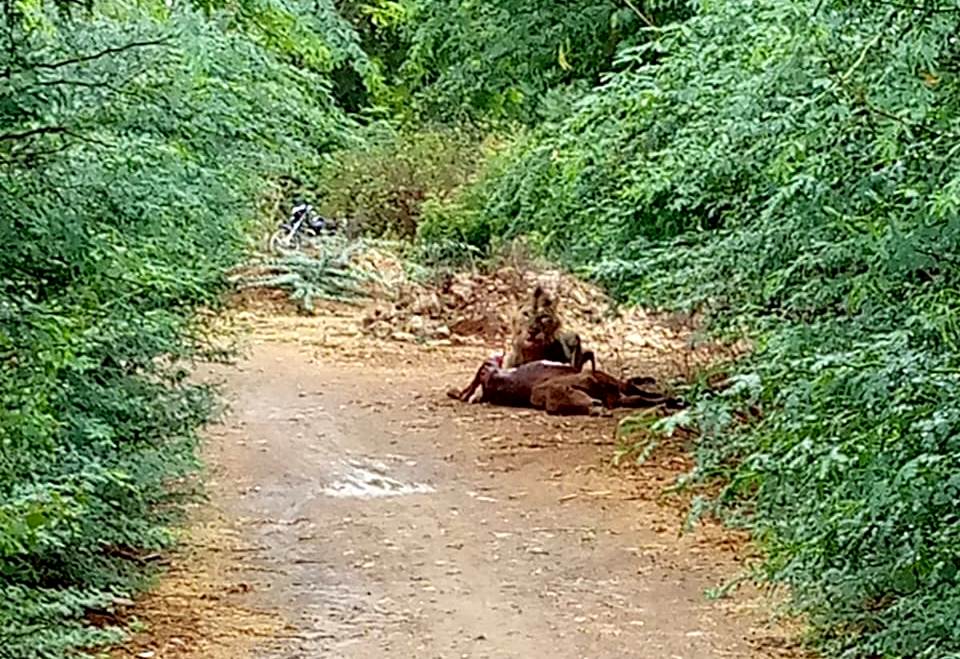 મારણ કરી મિજબાની આરોગતો હતો. તેમની તસ્વીર ડી એમ રાજપૂતે મોબાઇલ કેમેરામાં કેદ કરી લીધેલ….