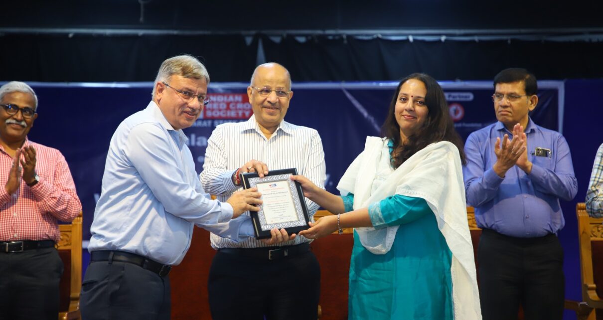 અતિથી વિશેષ તરીકે ડો. રાજેશ ગોપાલ, નિયામક, GSCBT તેમજ શ્રી અજયભાઇ પટેલ – ચેરમેન ગુજરાત રેડ ક્રોસ ઉપસ્થિત