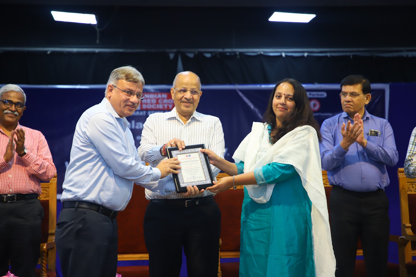 અતિથી વિશેષ તરીકે ડો. રાજેશ ગોપાલ, નિયામક, GSCBT તેમજ શ્રી અજયભાઇ પટેલ – ચેરમેન ગુજરાત રેડ ક્રોસ ઉપસ્થિત