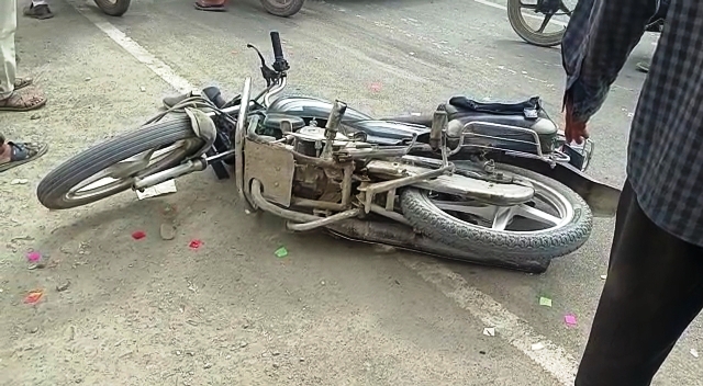 જી જે ૧૧ એ પી ૭૦૭૫ પર બસ સ્ટેશન તરફ જતા હતા ત્યારે બેફામ ઝડપે ચલાવી આવતો ડમ્પર ચાલકે બાઇકને પાછળના