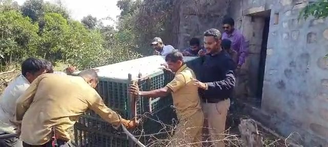 સમયે દિપડી ઓરડીમાં હોય એ દરમ્યાન વનવિભાગ પાંજરૂ સાથે પહોચી અને દરવાજા પાસે પાંજરૂ ગોઠવીને દીપડીને તેમના ચાર