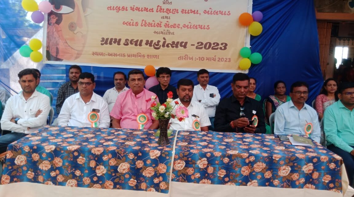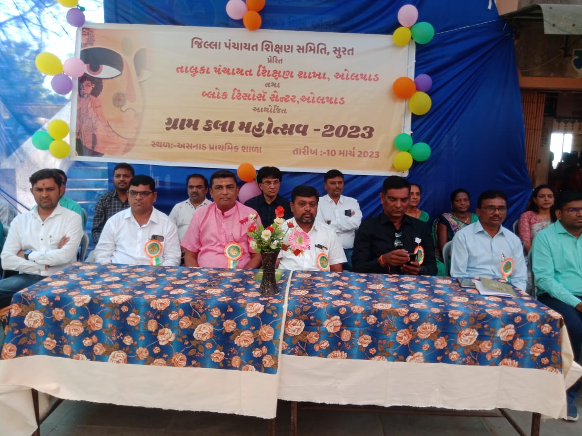 જિલ્લા પંચાયત શિક્ષણ સમિતિ, સુરત પ્રેરિત તાલુકા પંચાયત, ઓલપાડ તથા બ્લોક રિસોર્સ સેન્ટર, ઓલપાડ આયોજિત ગ્રામ્ય કલા મહોત્સવ-૨૦૨૩ નું ભવ્ય આયોજન જિલ્લા પંચાયત શિક્ષણ સમિતિ, સુરત સંચાલિત અસનાડ પ્રાથમિક શાળા ખાતે કરવામાં આવ્યું હતું. કલા, સાહિત્ય અને સંસ્કૃતિ ક્ષેત્રે આગવી ઓળખ ધરાવતાં બાળકોની સુષુપ્ત શક્તિઓને ખીલવવા તેમજ ગ્રામ્ય કલા વારસાને જીવંત રાખવાનાં શુભ હેતુસર યોજાયેલ આ કાર્યક્રમમાં તાલુકા પંચાયતનાં પ્રમુખ અમિતભાઈ પટેલ, સામાજિક ન્યાય સમિતિ અધ્યક્ષ કિશોરભાઇ રાઠોડ, તાલુકા પંચાયતનાં સદસ્ય જિજ્ઞેશભાઇ પટેલ, ગામનાં સરપંચ શ્રીમતી રાધાબેન રાઠોડ, સુરત જિલ્લા પ્રાથમિક શિક્ષક સંઘનાં પ્રમુખ કિરીટભાઈ પટેલ, તાલુકા પ્રાથમિક શિક્ષક સંઘનાં પ્રમુખ બળદેવભાઈ પટેલ તથા હોદ્દેદારો, લુના કેમિકલનાં મેનેજર એ.કે.સિંઘ ઉપરાંત મોટી સંખ્યામાં સ્પર્ધક બાળકો, સારસ્વતમિત્રો તેમજ ગ્રામજનો ઉપસ્થિત રહયા હતાં.