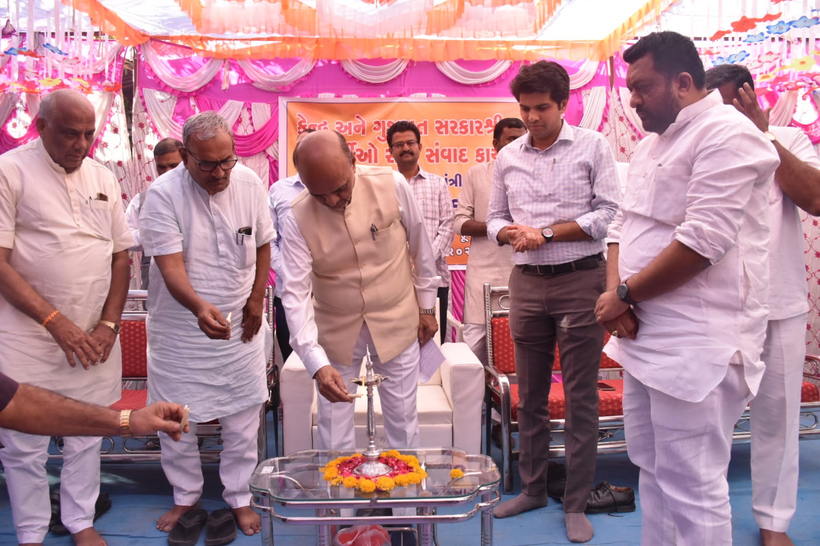 કેન્દ્ર સરકારના રાજ્યકક્ષાના નાણામંત્રી શ્રી ડો. ભગવત કરાડના અધ્યક્ષસ્થાને કેન્દ્ર અને ગુજરાત સરકારની યોજનાઓના સ્થાનિક લાભાર્થીઓ સાથે સવાદ કાર્યક્રમ યોજાયો હતો. મંત્રીશ્રીના હસ્તે જૂનાગઢના ડુંગરપુર ખાતે પ્રધાનમંત્રી આવાસ યોજના અને પ્રધાનમંત્રી જન આરોગ્ય યોજનાના લાભાર્થીઓને લાભ સહાય એનાયત કરવામાં આવ્યા હતા.