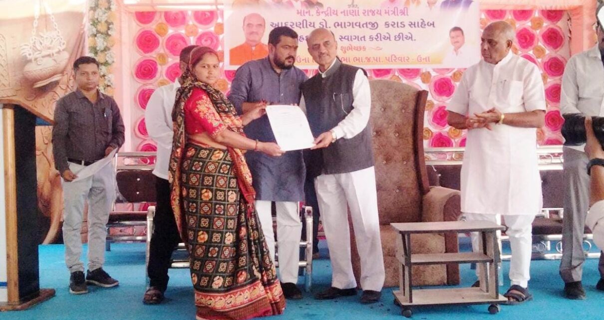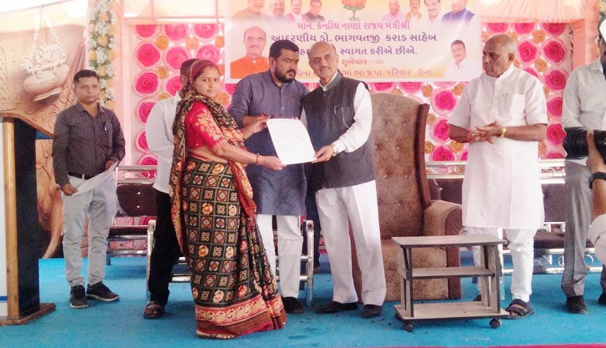 જે પી નંદાએ સોંપતા ઉના તાલુકાના મત વિસ્તારની ત્રણ દિવસની મુલાકાતે આવેલા કેન્દ્રીય નાણાં રાજ્ય મંત્રી ડો.ભાગવતની