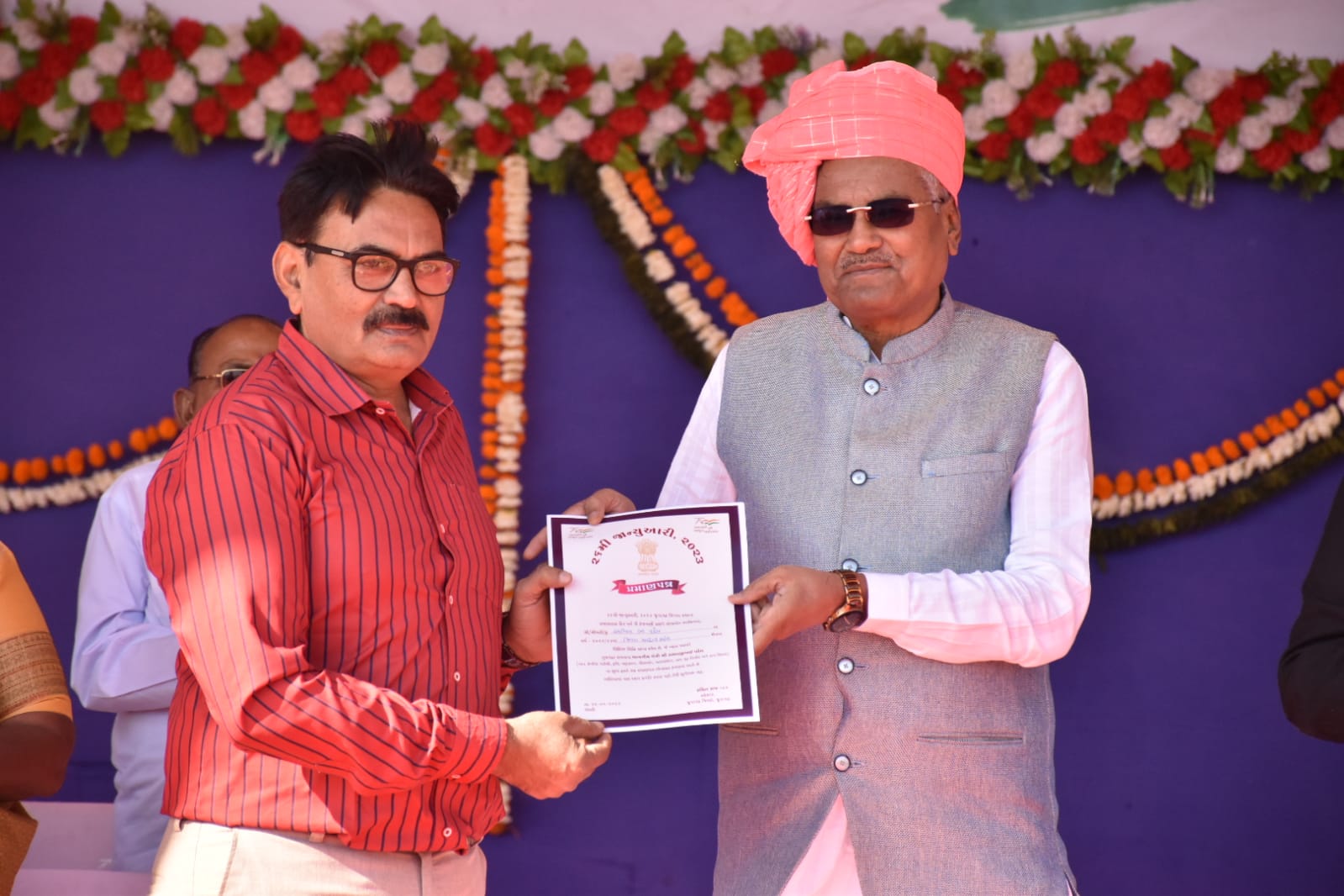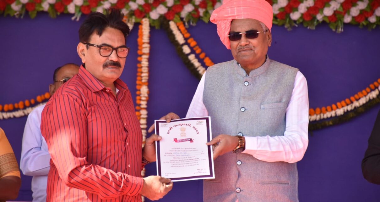 જૂનાગઢ જિલ્લા કક્ષાનાં પ્રજાસત્તાક પર્વની ઉજવણી વંથલી ખાતે કરવામાં આવી હતી. આ પ્રસંગે વિવિધ કચેરીઓના કર્મચારીઓનું સન્માન કરવામાં આવ્યું હતું. જે અંતર્ગત માહિતી ખાતાનાં કર્મી શ્રી અશ્વિન પટેલનું સન્માન પ્રભારી મંત્રીશ્રી રાઘવજીભાઇ પટેલનાં હસ્તે કરવામાં આવ્યુ હતુ.