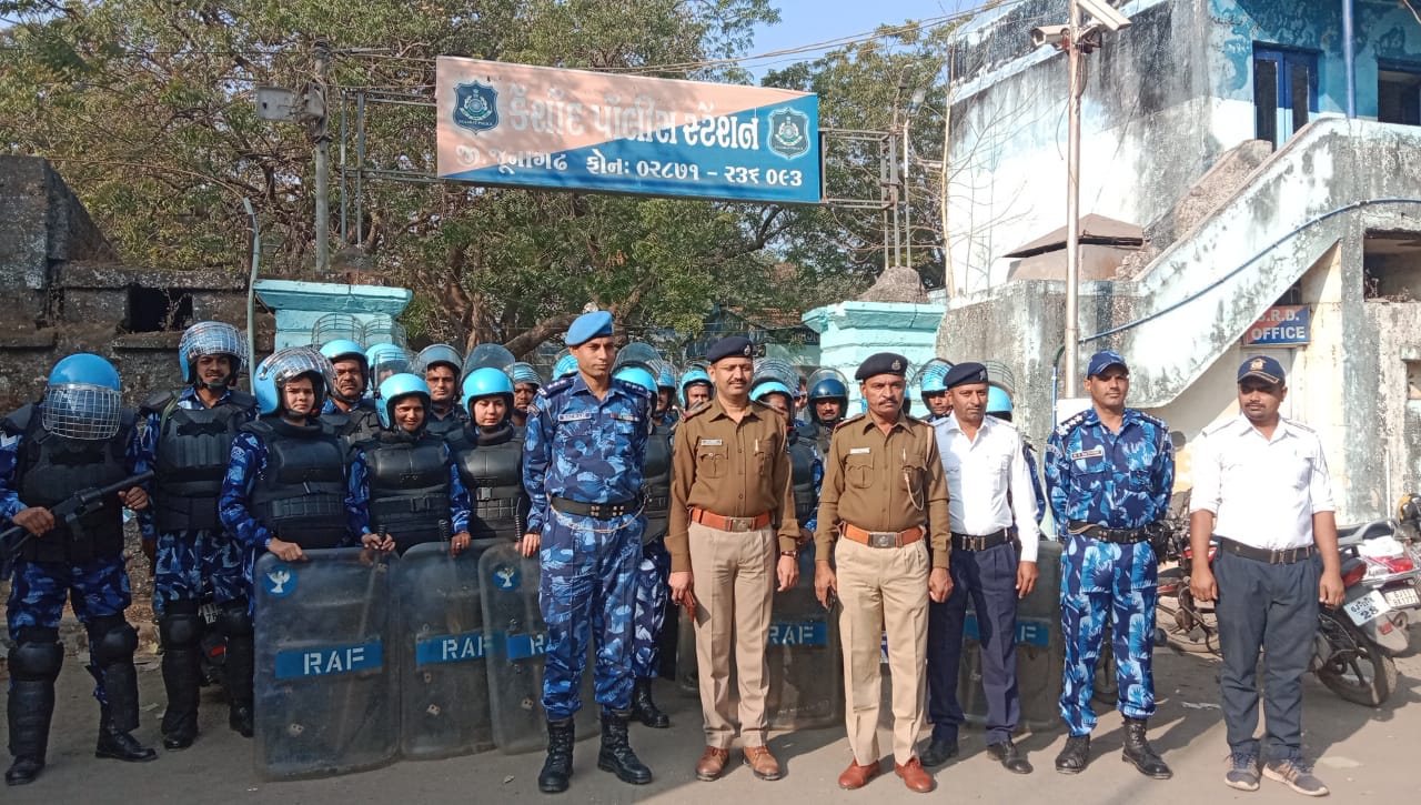 કેશોદ પોલીસના માર્ગદર્શન હેઠળ રેપીડ એક્શન ફોર્સેનું ફૂટ પેટ્રોલિંગ