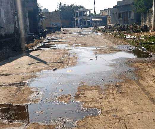 છેલ્લા એક માસથી રસ્તા પર પાણી ફળી વળતા આજુબાજુમાં રહેતા લોકો તેમજ શાળાના છાત્રોને પાણીજન્ય રોગોની ભીતી