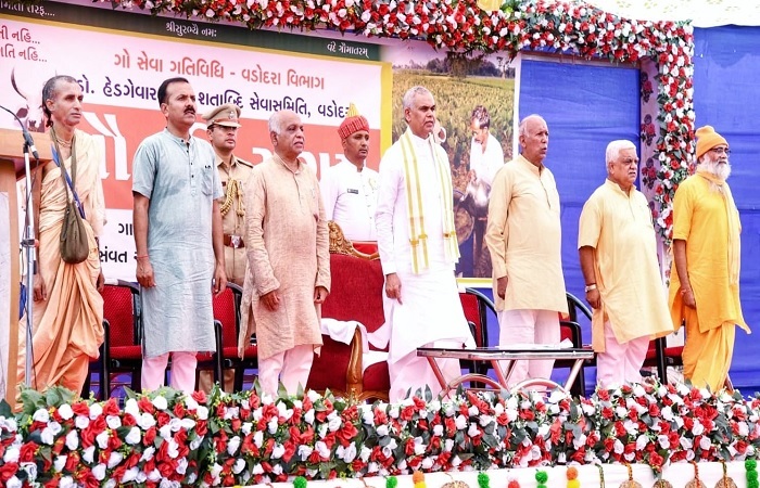 ગો સેવા ગતિવિધિ – વડોદરા વિભાગના યજમાન પદે વડોદરા જિલ્લાના ડભોઈ તાલુકાના બાણજ ગામમાં યોજાયેલા ગૌ કૃષિ સંગમ કાર્યક્રમમાં ગુજરાતના રાજ્યપાલશ્રી આચાર્ય દેવવ્રતજીએ પ્રાકૃતિક કૃષિને કૃષિના નવા યુગનો પ્રારંભ ગણાવી પ્રગતિશીલ ખેડૂતોને પ્રકૃતિ તરફ પ્રયાણ કરવા આહ્વાન કર્યુ હતું.