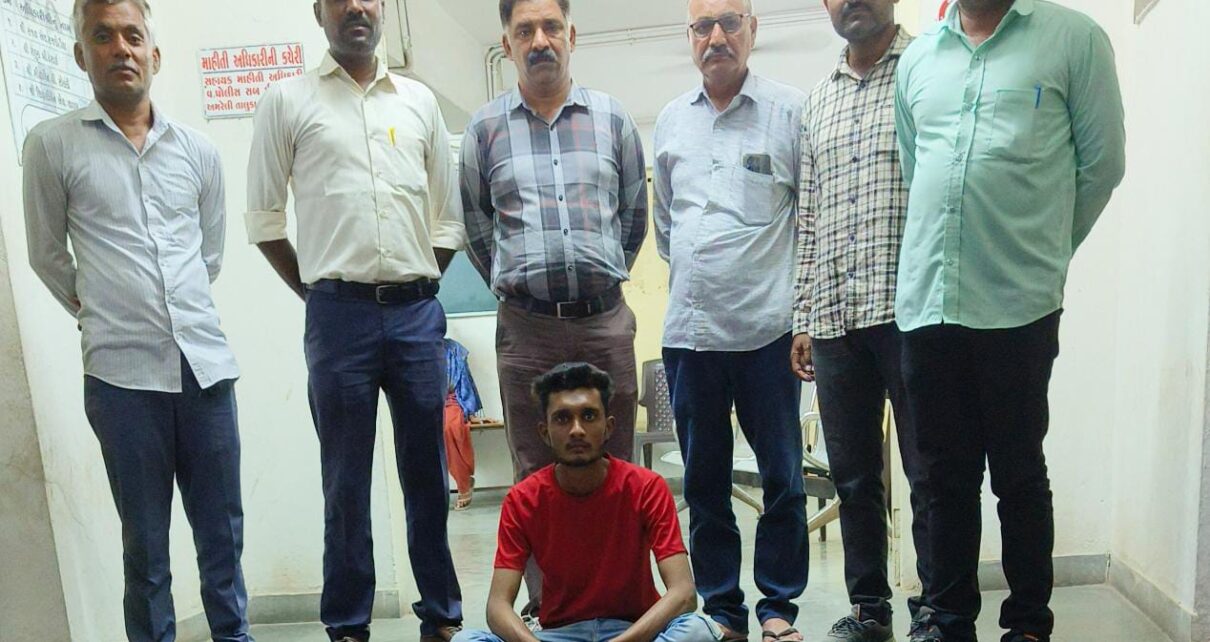 પકડાયેલ આરોપી :- *મયુર રમેશભાઇ માધડ ઉ.વ.આશરે-૨૧ વર્ષ ધંધો-મજુરી રહે.ધારી જૂના સીનેમા રોડ ડો.આંબેડકર નગર તા.ધારી જી.અમરેલી હાલ-શાપર(વેરાવળ) તા.જી.રાજકોટ*